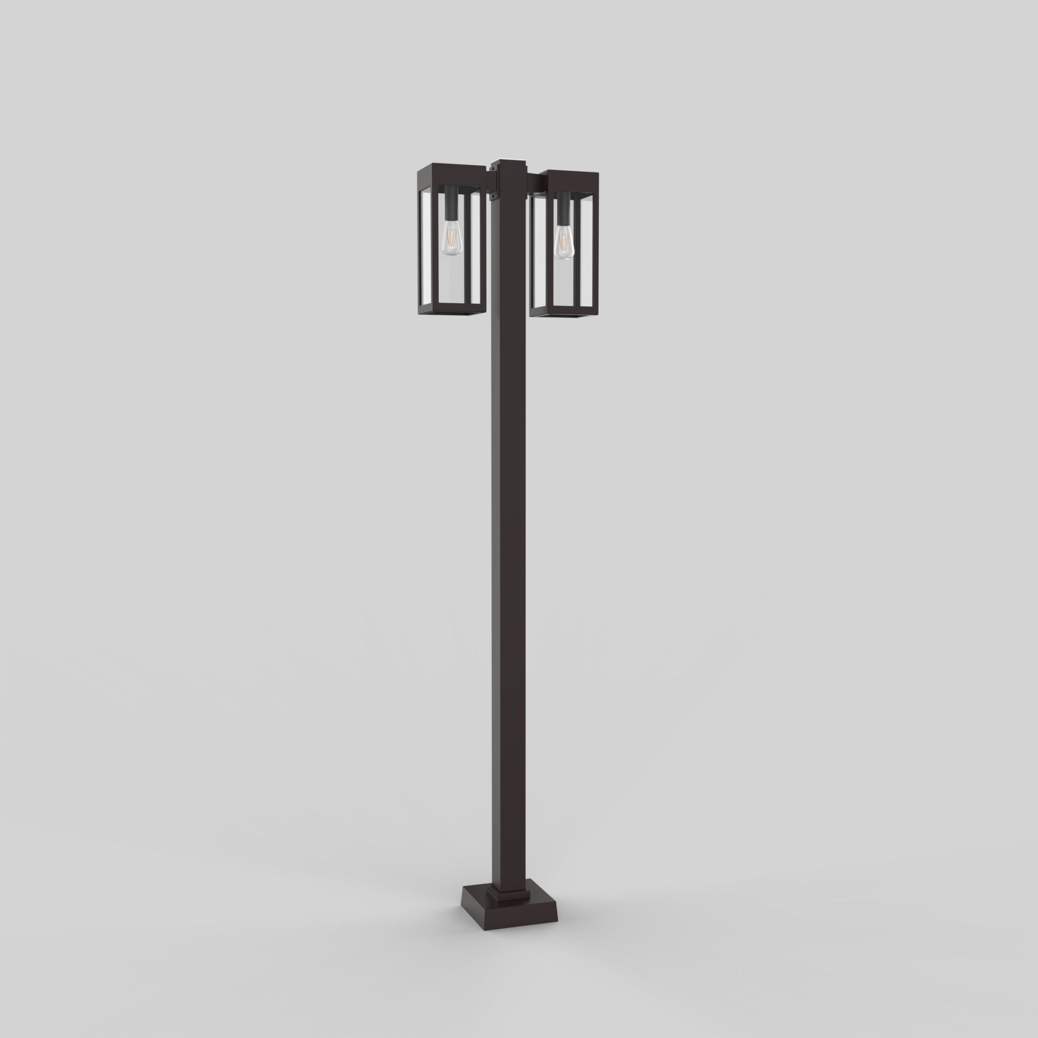 Découvrez STOCKHOLM – Poteau d’aluminium carré de 3 pouces avec base soudée pour 2 têtes à 180°