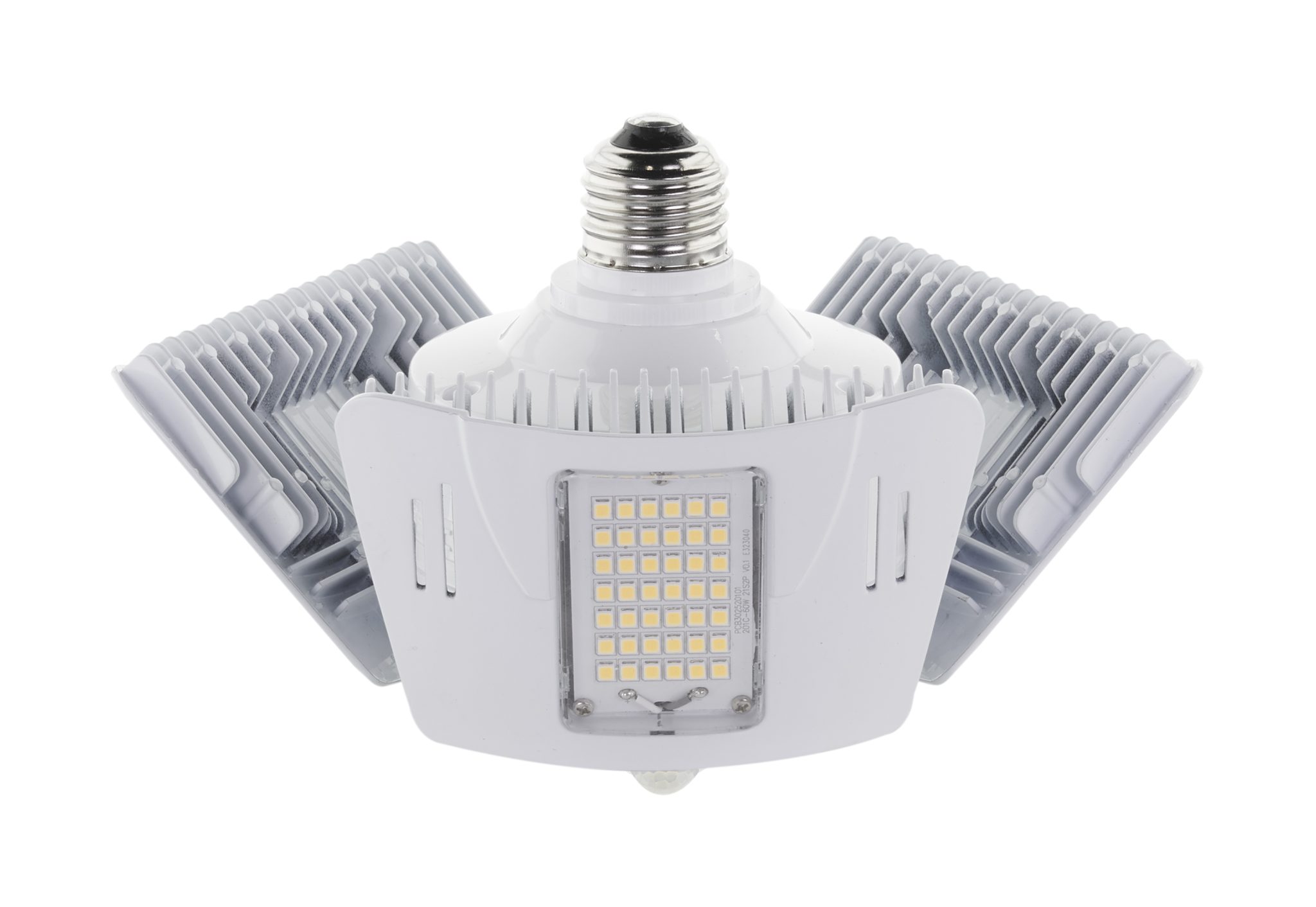 Le projecteur utilitaire LED 60 watts de Satco offre des économies d’énergie et un éclairage performant. Ce projecteur multi-faisceaux est idéal pour les garages, les granges, les ateliers ou tout grand espace ouvert nécessitant un éclairage plus intense. Cette lampe transparente en forme d’épi de maïs est équipée d’un détecteur de mouvement et offre une durée de vie de 50 000 heures en lumière blanche froide.