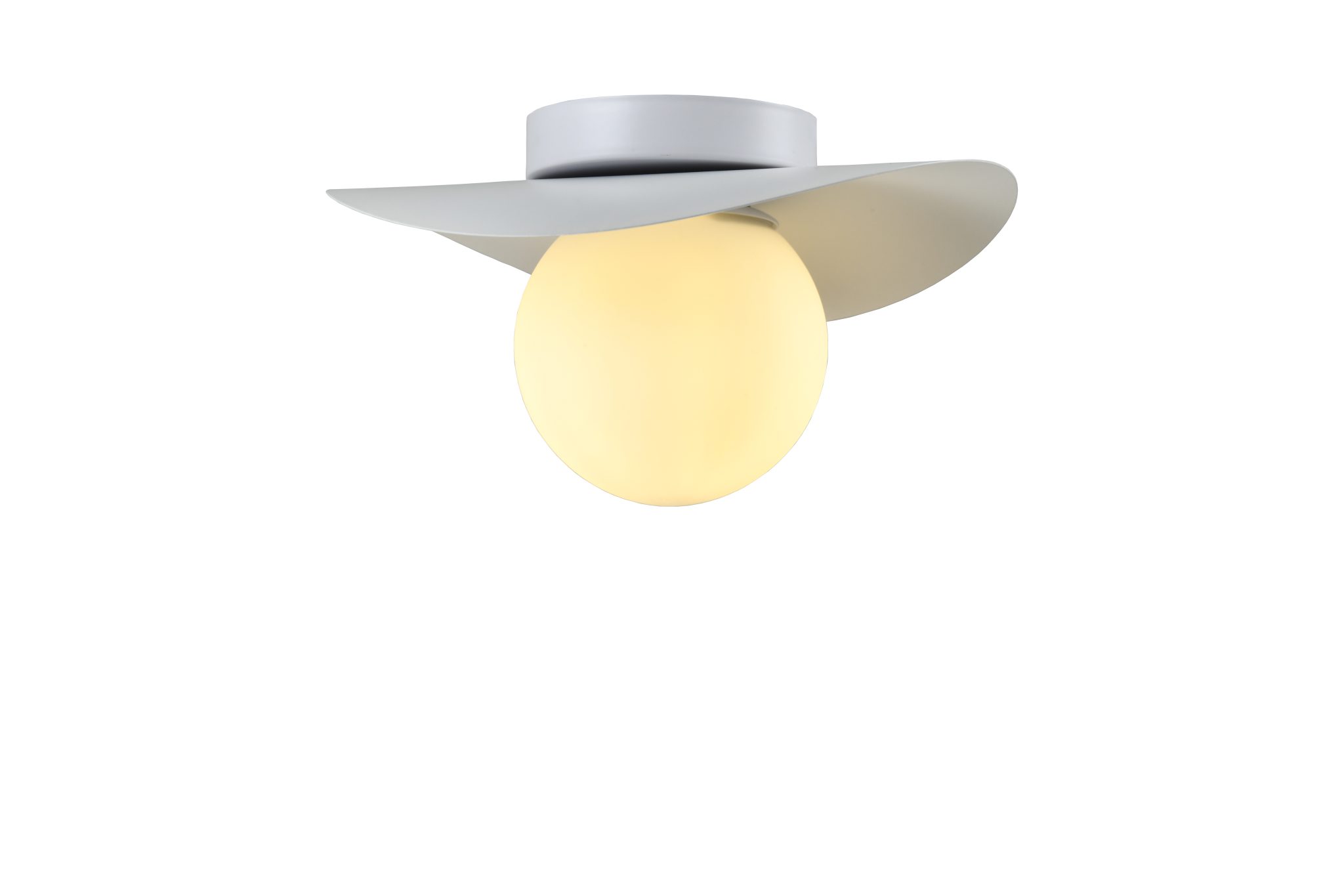 Ce plafonnier au design contemporain se distingue par ses lignes épurées et son allure sculpturale. Son globe en verre opalin diffuse une lumière douce et uniforme, tandis que ses ailettes légèrement courbées ajoutent une touche artistique et élégante. Polyvalent et raffiné, il s’intègre parfaitement dans une entrée, un passage, une chambre ou encore un espace de vie au style moderne ou minimaliste.
