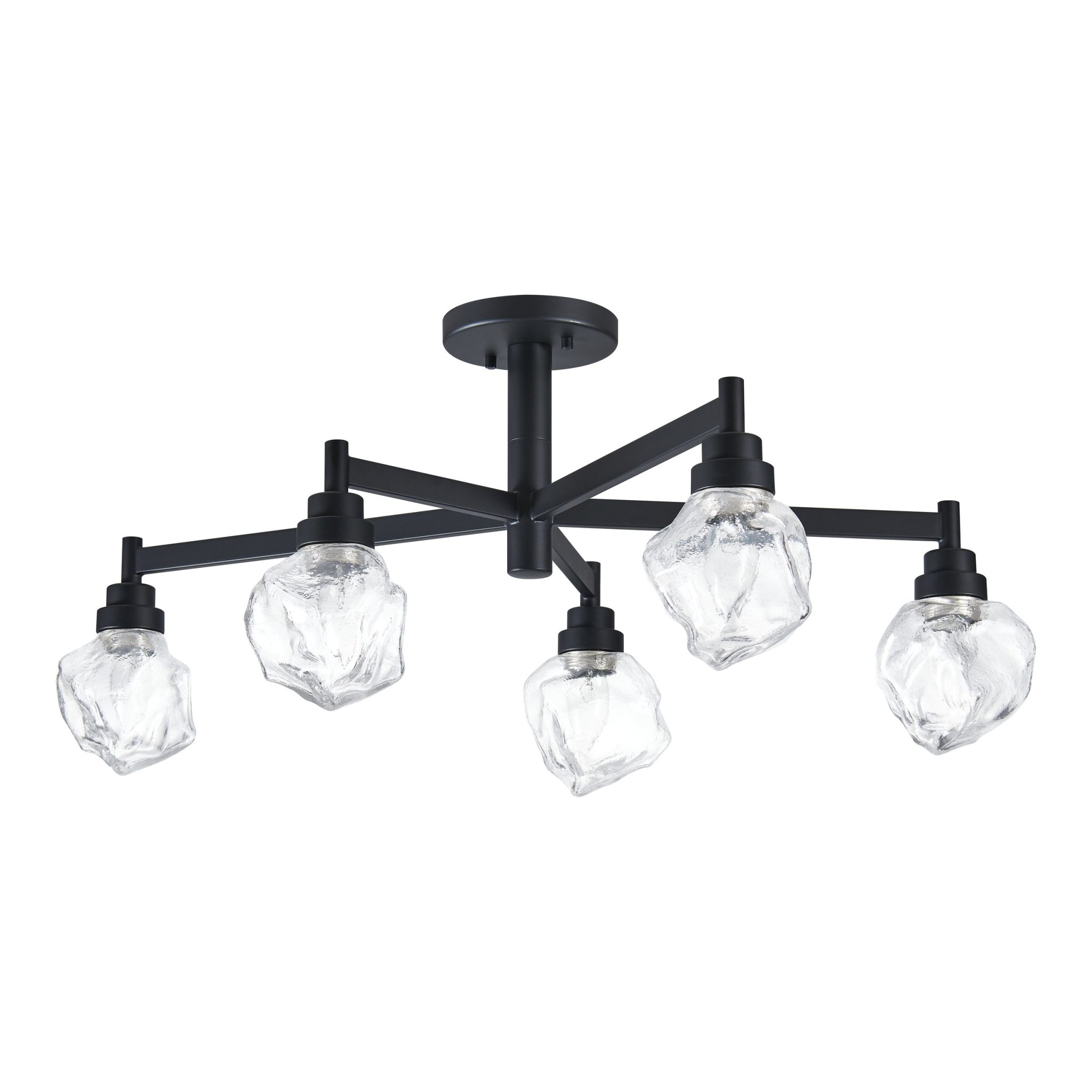 Découvrez Lillyanna semi-plafonnier 26 po à 5 lumières noir mat avec abat-jours en verre de glace clair