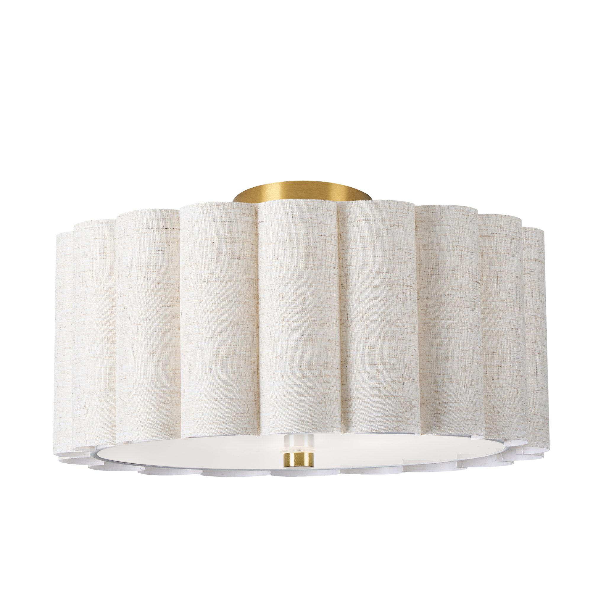 Découvrez PACIFICA Semi-plafonnier, fini laiton vieilli avec abat-jour beige, 9,5po Hauteur, 16po Largeur, 3 x 60W E26