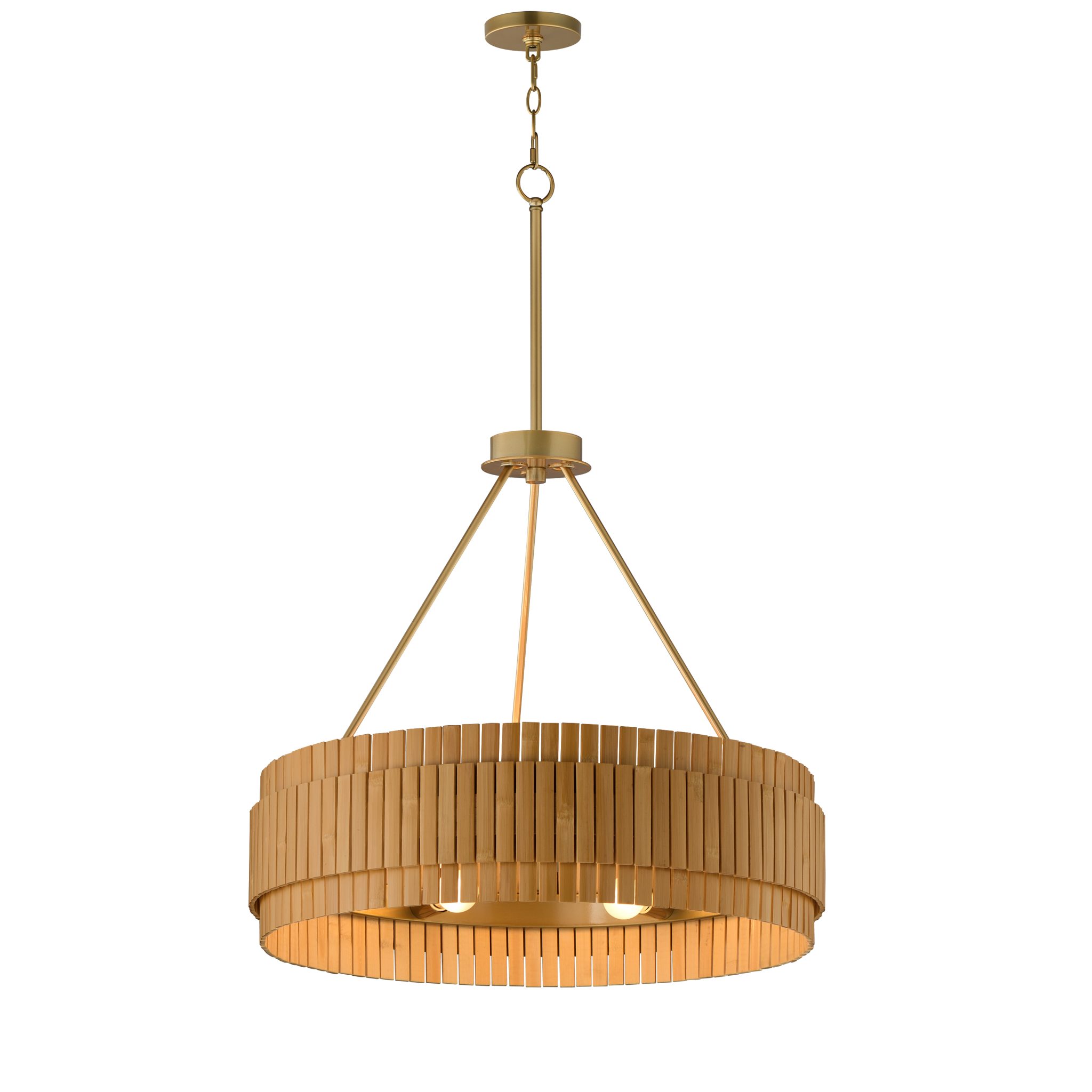 Découvrez SATORI Luminaire suspendu, fini laiton vieilli naturel en bambou, 30,75po Diamètre, 42,5po Hauteur, 6 x 60W E26
