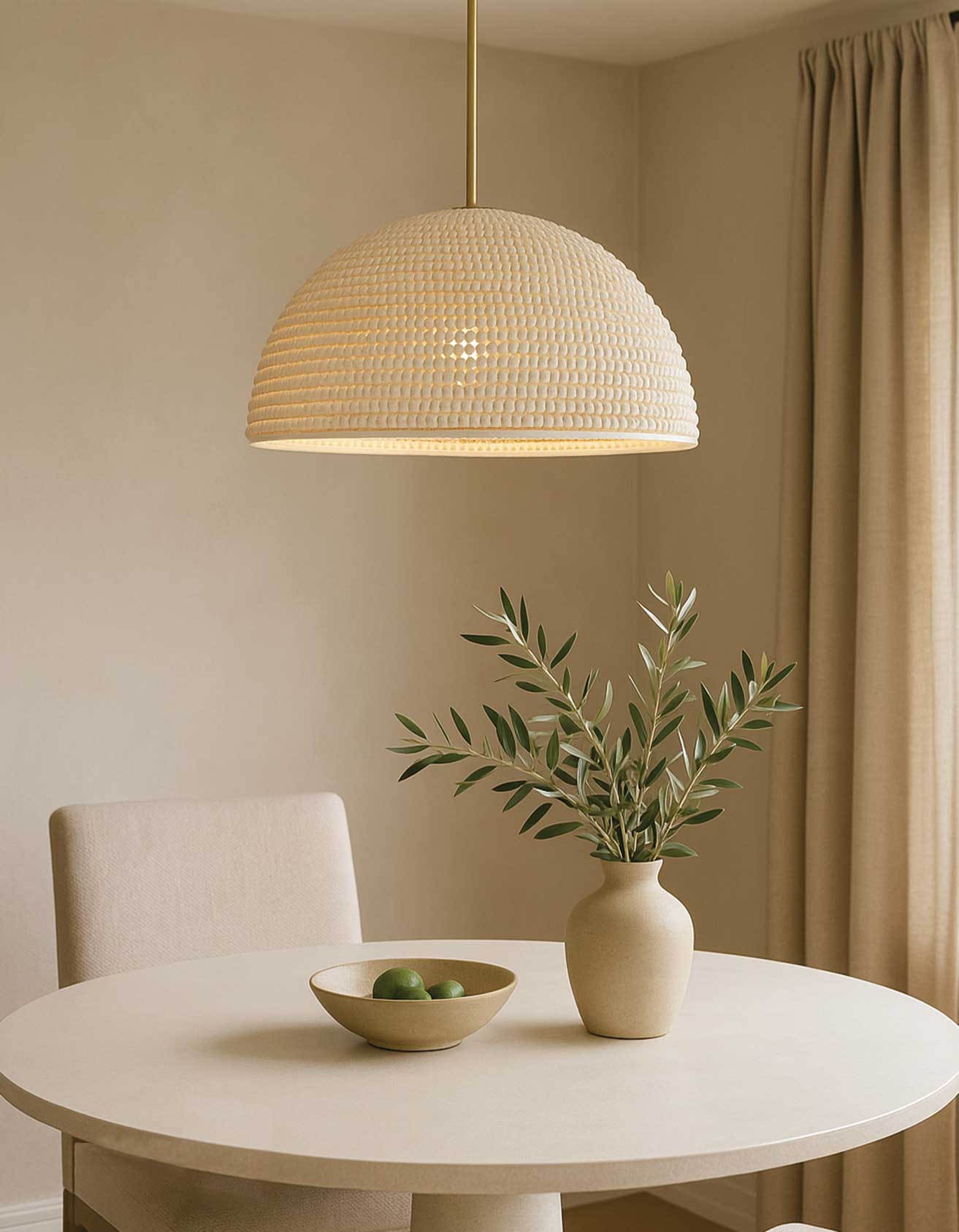 Découvrez BREANNE Luminaire suspendu, fini blanc, 23po Hauteur, 35po Diamètre, 4 x E26 60W