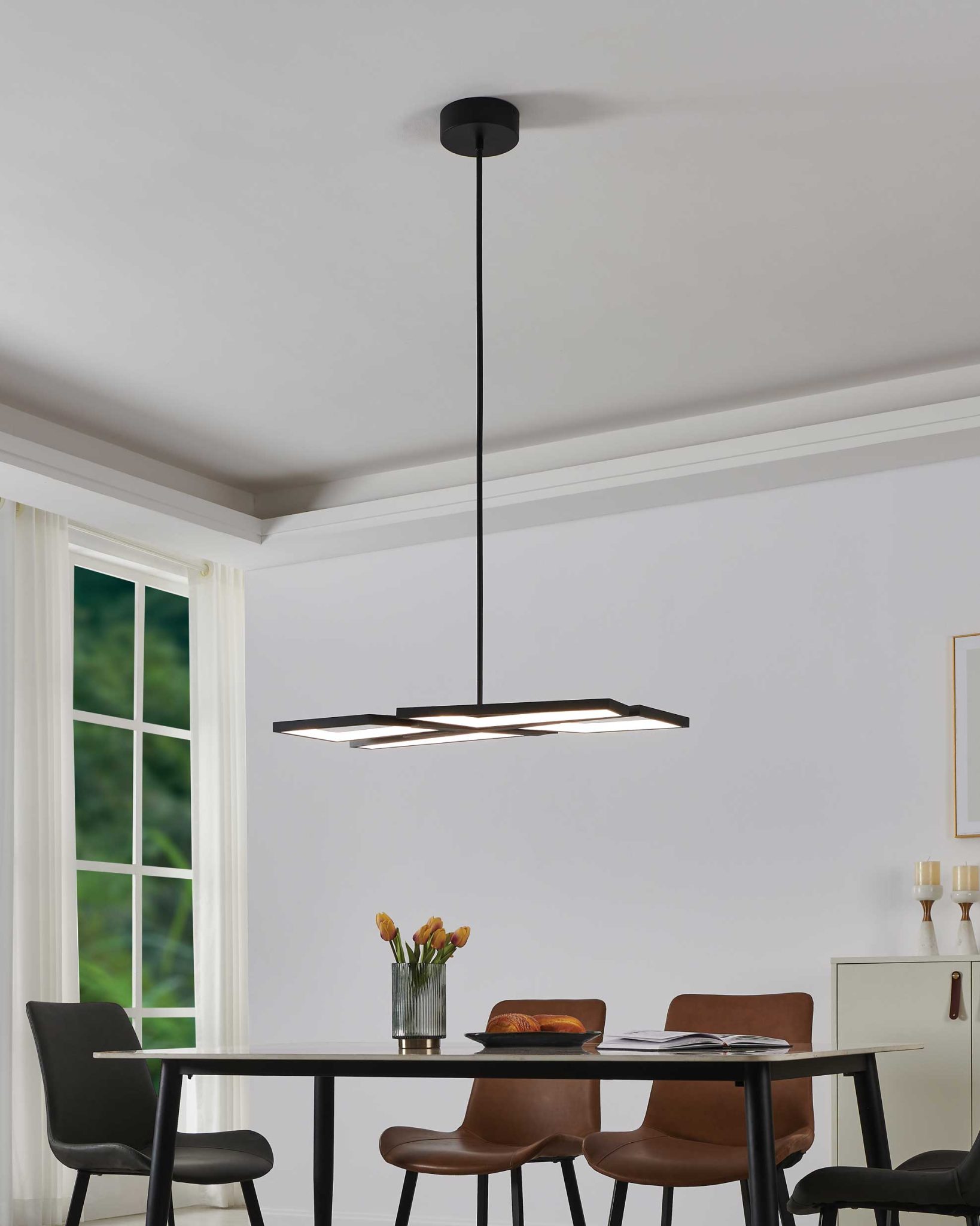 Découvrez ALFIE Luminaire suspendu noir texturé, 30po Longueur, 15po Largeur, 1,13po Hauteur, DEL, 3CCT, 4000 Lumens