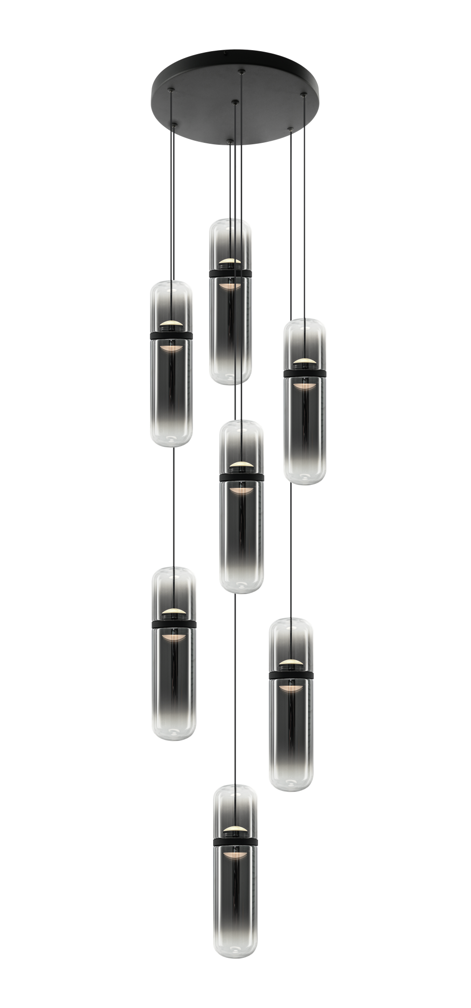 Amulet allie une sophistication épurée à une luminosité sculpturale dans cette collection de suspensions modernes. Chaque capsule de verre allongée présente un centre légèrement teinté qui se fond dans du verre transparent en haut et en bas, créant un dégradé raffiné et une lumière chaude et enveloppante. La finition Or Champagne s’harmonise avec le verre ambré, tandis que la finition Noir Mat se marie avec le verre fumé, offrant chacune une expression distincte et contemporaine. Suspendues à un pavillon assorti, les suspensions flottent avec grâce, apportant mouvement et intérêt visuel à tout espace. Équipées d’un commutateur 5CCT à l’intérieur du pavillon pour ajuster la température de couleur parmi 5 options.