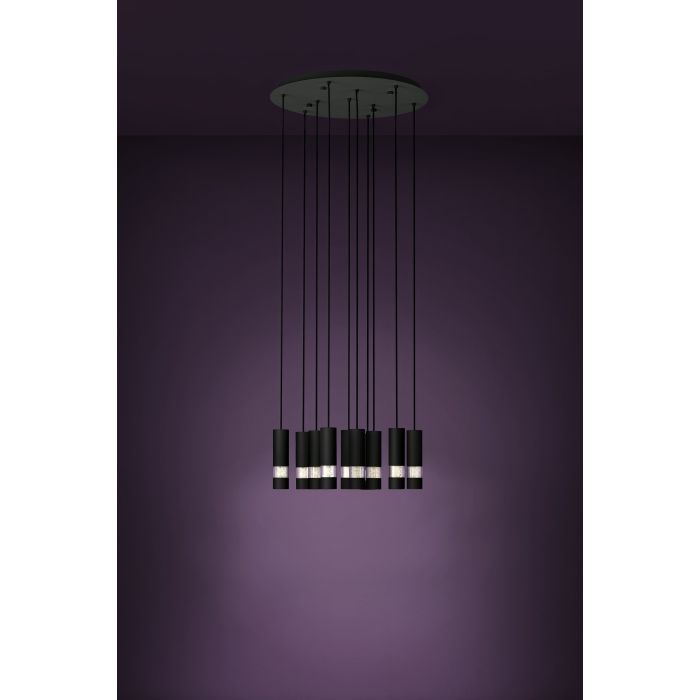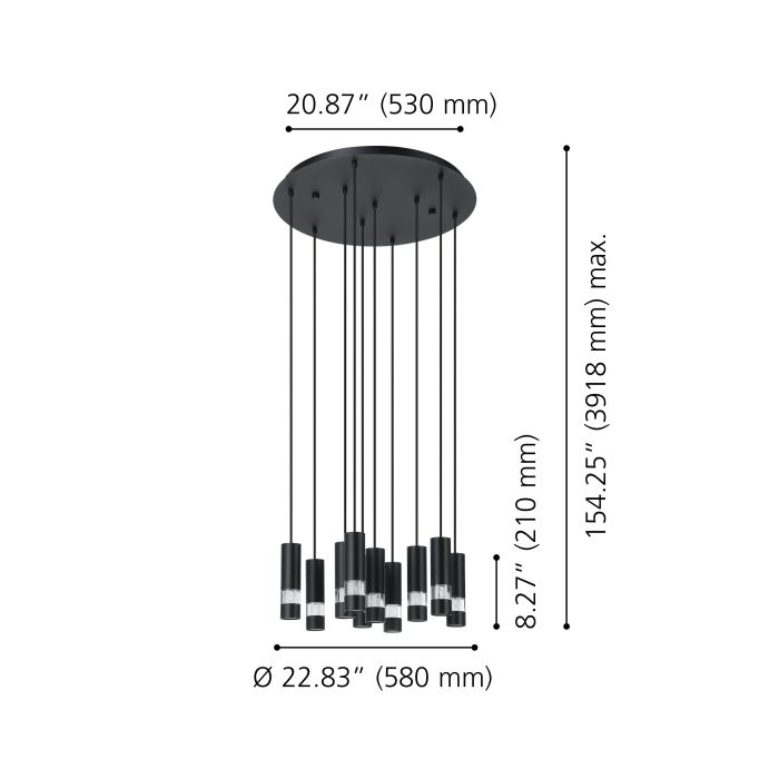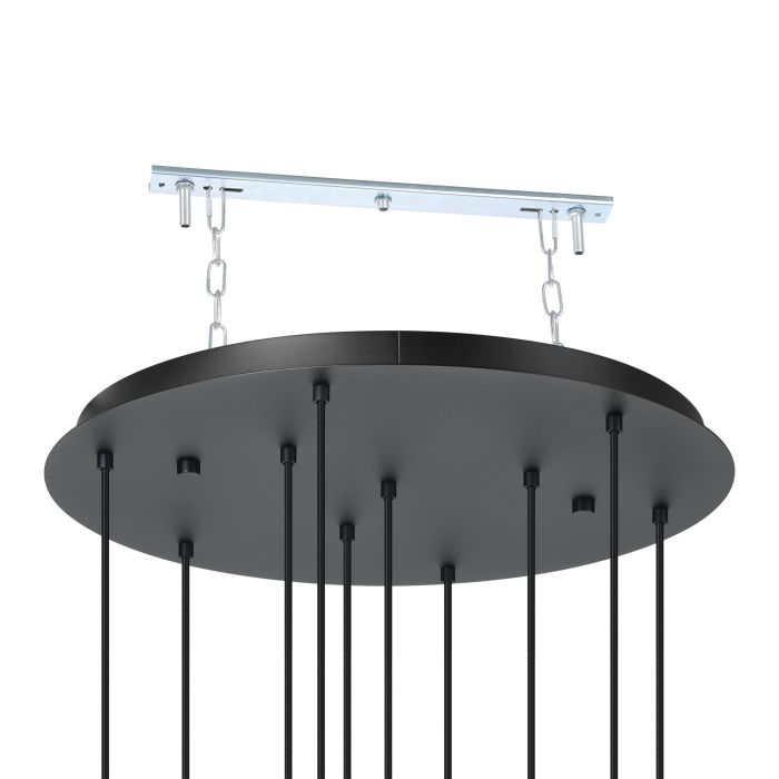 Découvrez BERNABETA Luminaire suspendu fini noir, 22,83po Diamètre, 8,27po Hauteur, 154,25po Hauteur max., 10 x 4,5W, GU10 DEL, 3000K incluses