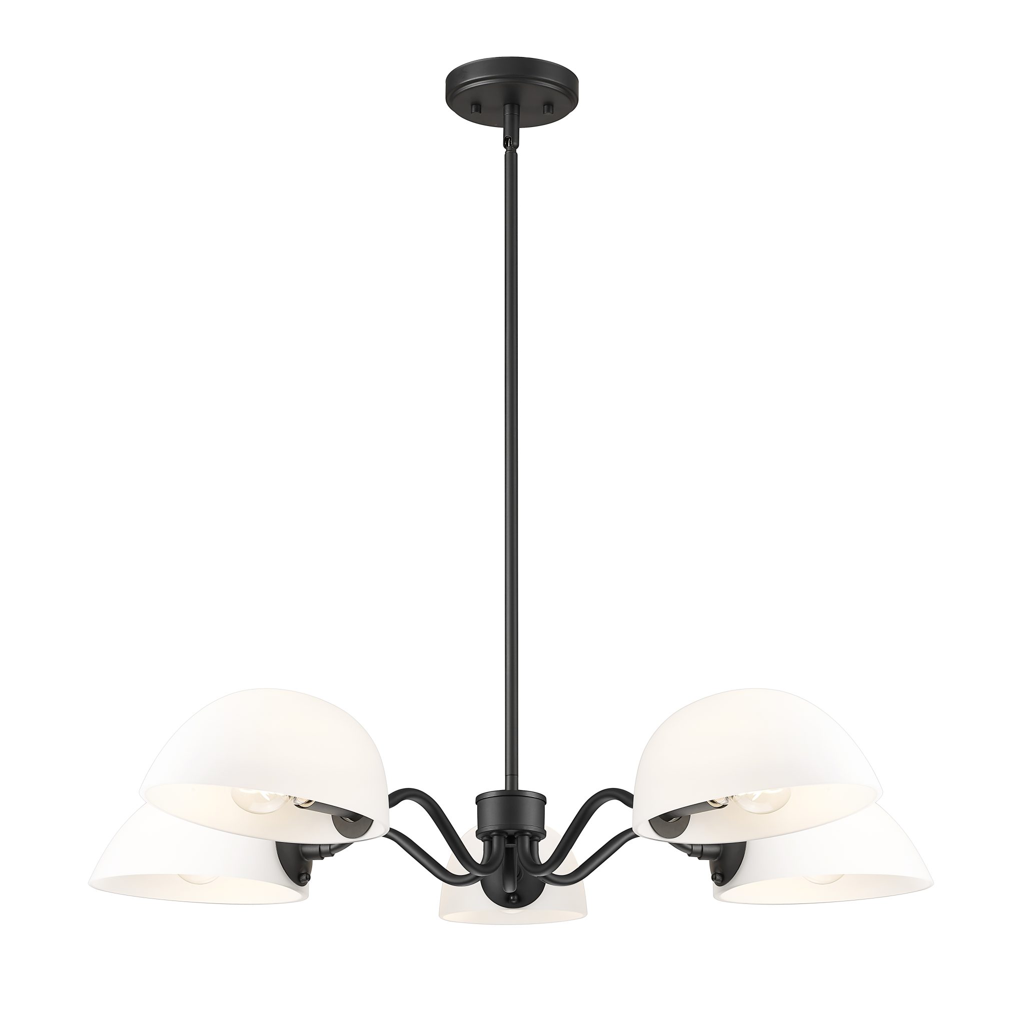 Optez pour une élégance flexible et une grande polyvalence avec ce lustre moderne à cinq lumières. Ses abat-jour en verre opale en forme de dôme, ses bras aux lignes courbes et sa structure noire mate lui confèrent une profondeur et un caractère exceptionnels, sublimant vos espaces de vie, salle à manger et chambre. Orientables, les abat-jour permettent d’orienter la lumière vers le haut ou vers le bas selon vos envies et la configuration de votre pièce.