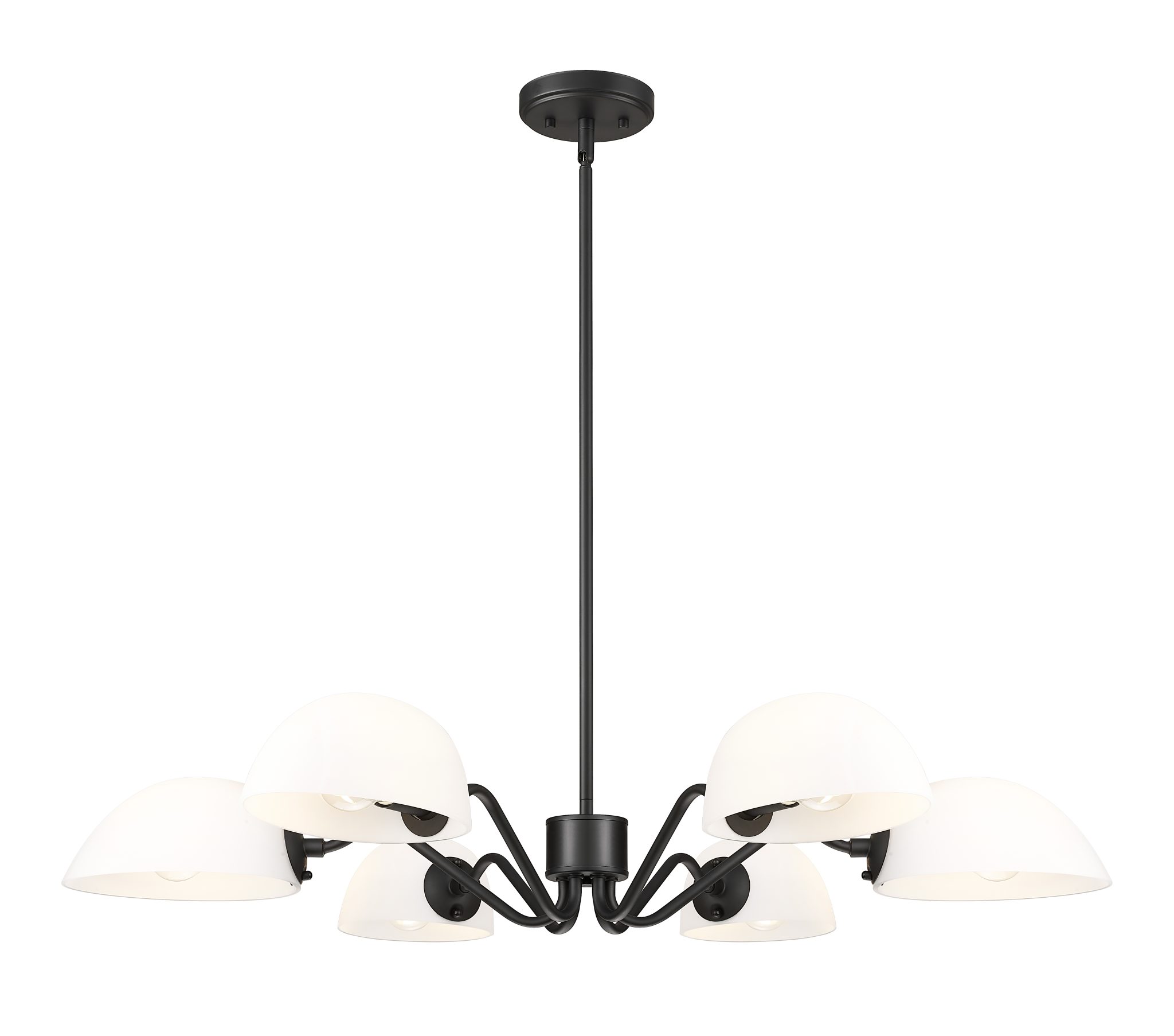 Optez pour une touche de modernité ludique avec ce lustre à six lumières qui apporte polyvalence et personnalité à votre salon ou salle à manger. Sa finition noire mate, à la fois élégante et intemporelle, définit un luminaire facilement transformable en semi-encastré. Les abat-jour en forme de dôme, confectionnés en verre opale raffiné, peuvent être orientés pour diffuser une lumière vers le haut ou vers le bas, vous offrant ainsi une personnalisation optimale de votre intérieur.