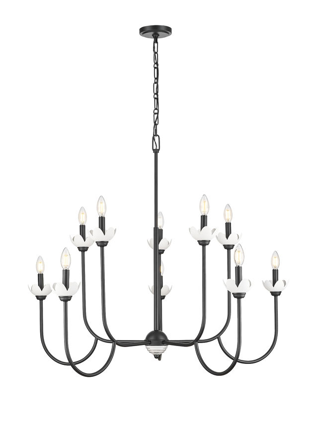 Découvrez ALLISTAIR Luminaire suspendu fini noir mat, 42po Largeur, 35po Hauteur, 10 x 60W, E12