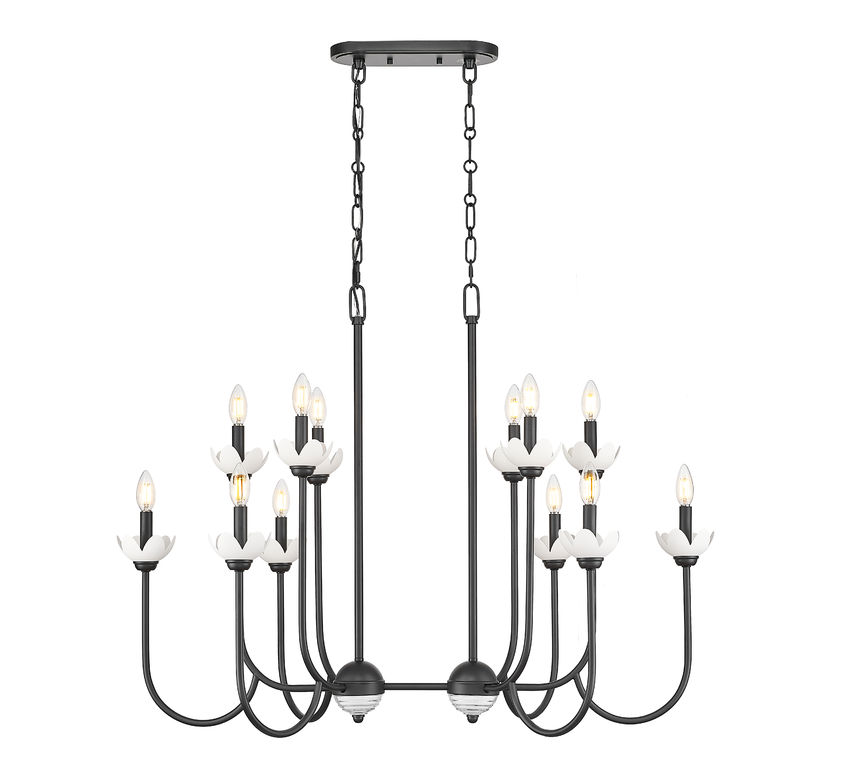 Découvrez ALLISTAIR Luminaire suspendu fini noir mat, 42po Longueur, 30,5po Hauteur, 12 x 60W, E12