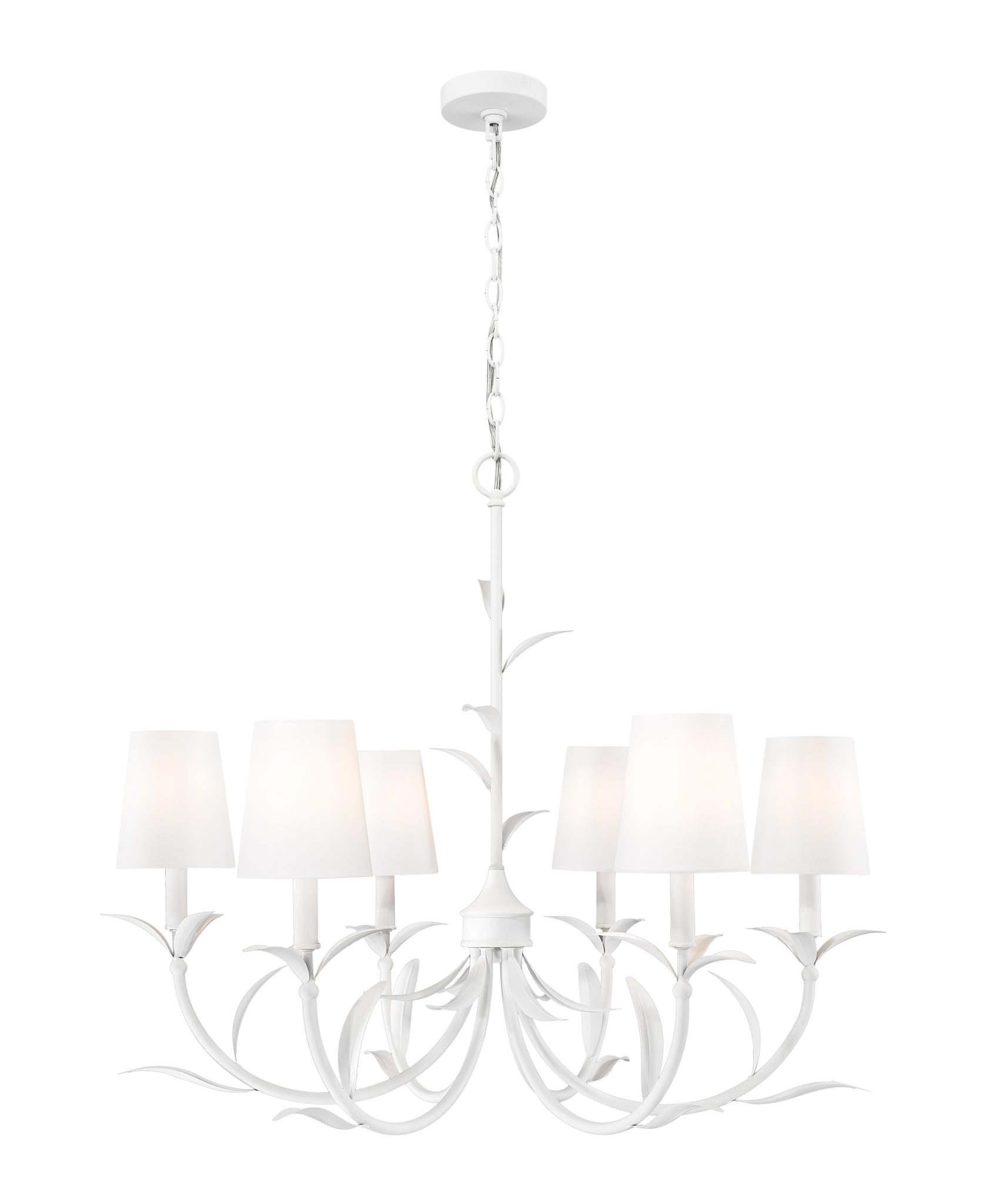 La structure en acier blanc texturé confère une élégance raffinée à ce lustre botanique à six lumières, idéal pour créer une ambiance naturelle dans les salles à manger, les entrées et les chambres. Ses bras incurvés aux frondes délicatement sculptées lui donnent un aspect luxueux, tandis que ses supports lisses et ses douilles de type candélabre permettent de moduler l’intensité lumineuse et de créer une atmosphère apaisante.