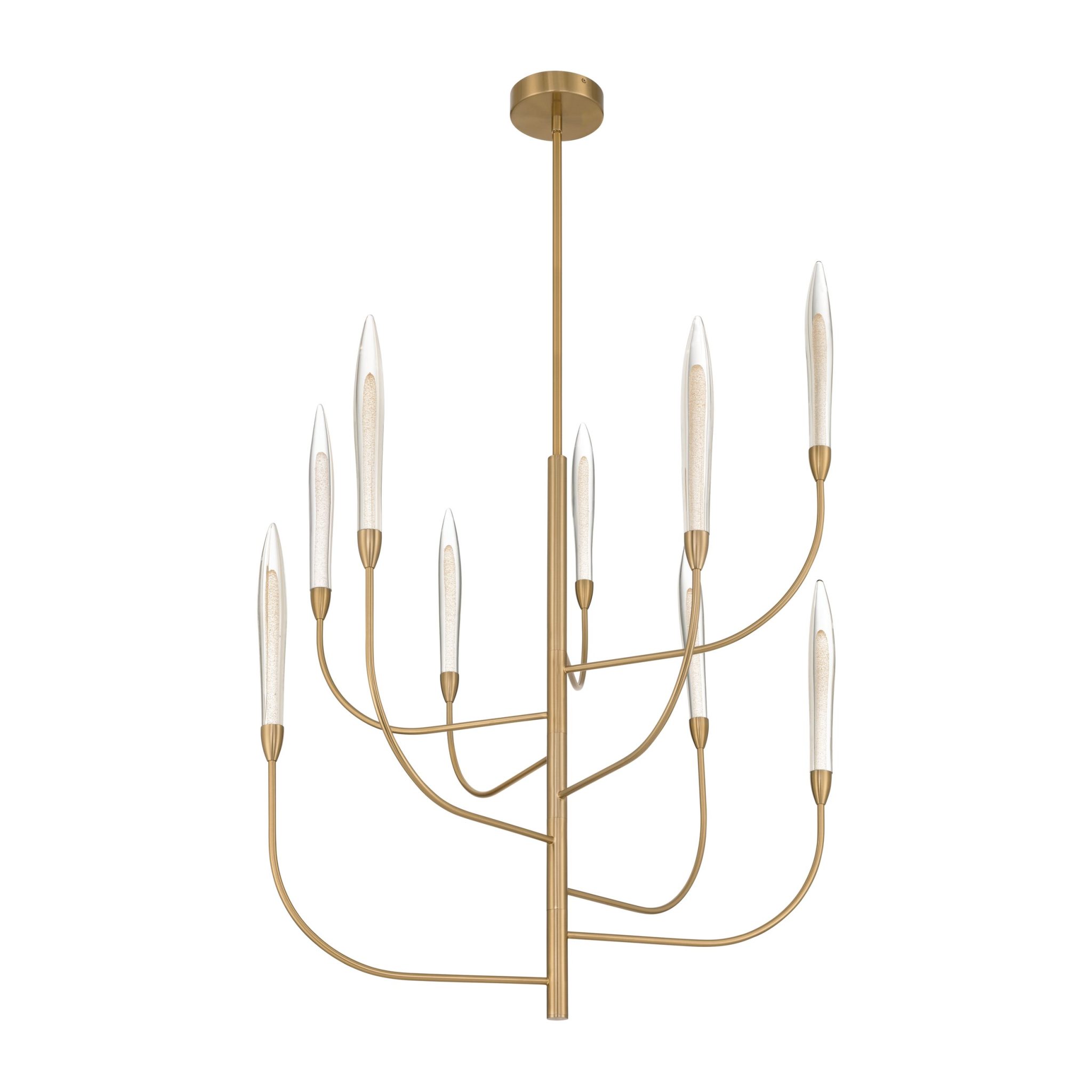 Découvrez Calle lustre DEL 36 po à 9 lumières laiton avec abat-jours en verre feuille d’or pressé à la main