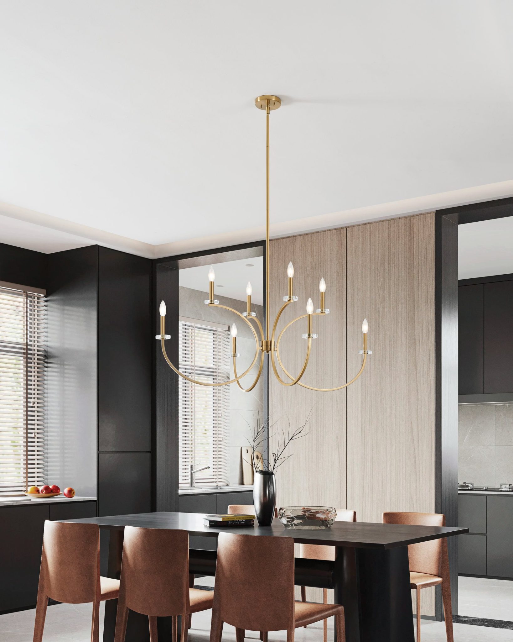 Le lustre Florian incarne une élégance traditionnelle moderne avec sa forme fluide inspirée de la calligraphie. Sa finition en or brossé souligne la courbe gracieuse de ses bras, chacun soutenant une lumière de style chandelier qui diffuse un charme intemporel. Des bobèches en verre clair ajoutent une touche d’éclat et peuvent être retirées pour un look plus épuré, permettant à Florian de naviguer aisément entre luxe classique et raffinement contemporain.