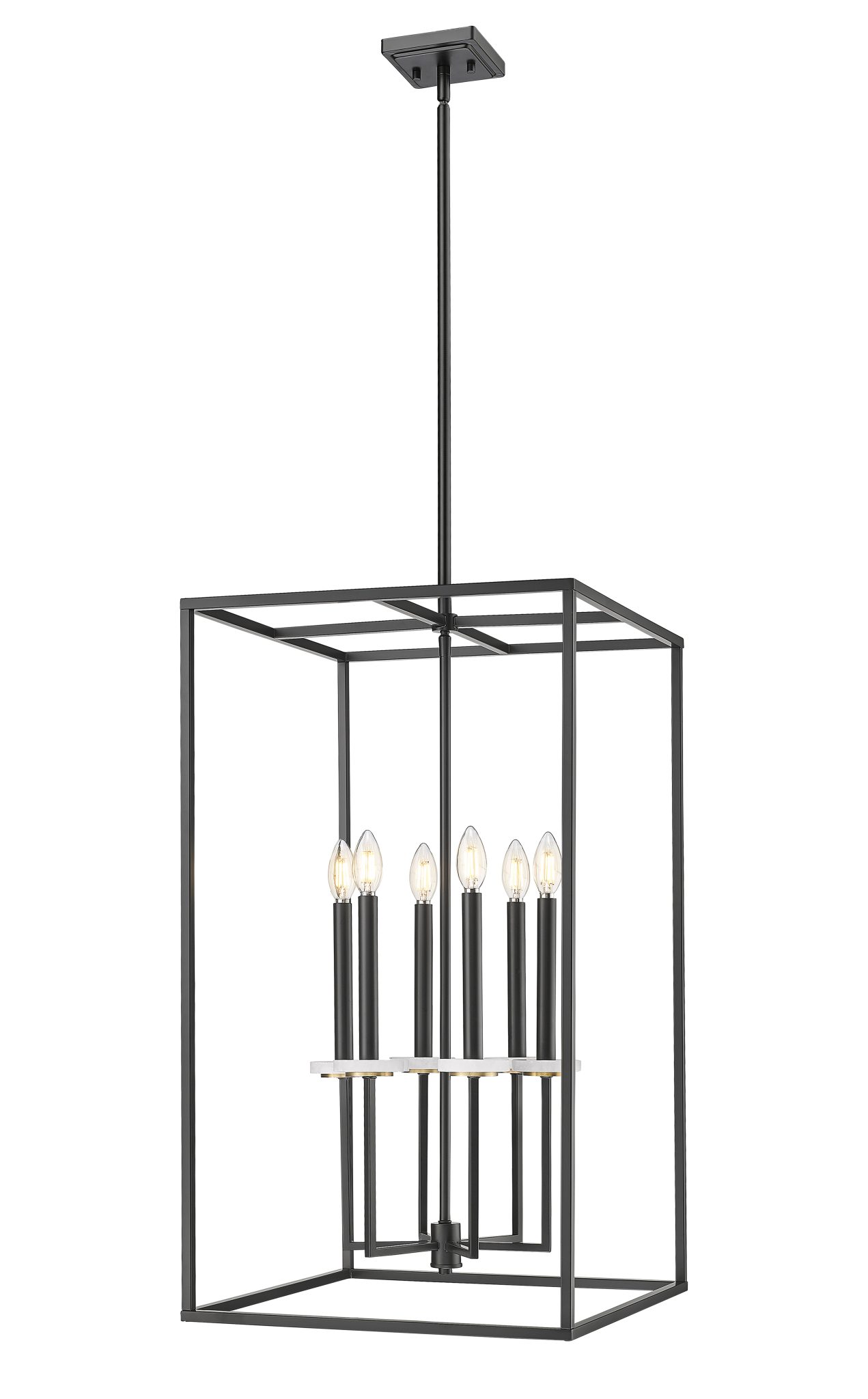 La structure en acier noir mat, audacieuse et ajourée, de ce lustre à six lumières crée une ambiance chaleureuse dans les salons, salles à manger et entrées. Sa silhouette haute et rectangulaire est idéale pour les espaces étroits, tandis que la lumière à intensité variable, diffusée par des douilles de type candélabre ornées de charmantes bobèches, s’adapte parfaitement aux pièces étroites.