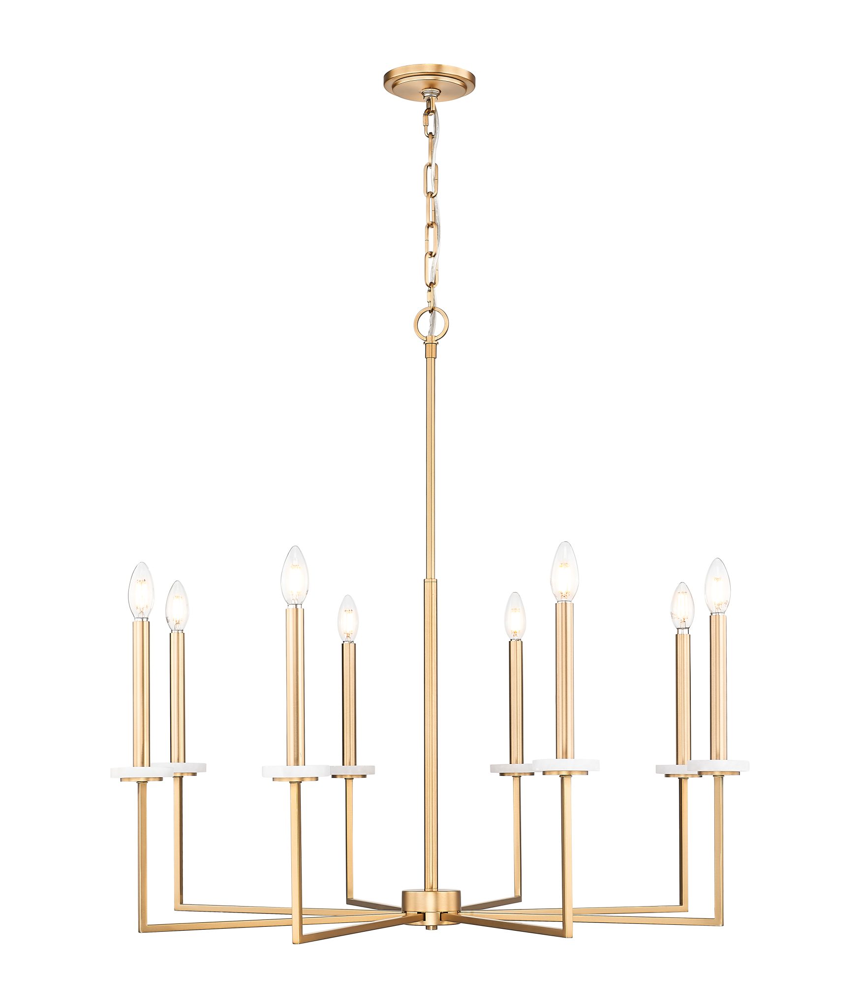 Un motif royal aux lignes angulaires et épurées confère une élégance raffinée à tout espace, faisant de ce lustre moderne en acier doré à huit lumières un véritable point focal. Salles à manger, salons et halls d’entrée s’animent grâce à sa structure métallique ajourée qui met en valeur de charmants bobèches et appliques sur des bras allongés, tandis que les douilles de type candélabre évoquent le charme d’un village. L’ajout d’un variateur permet de moduler l’intensité lumineuse de ce lustre, créant ainsi différentes ambiances ou s’adaptant à tous les besoins.