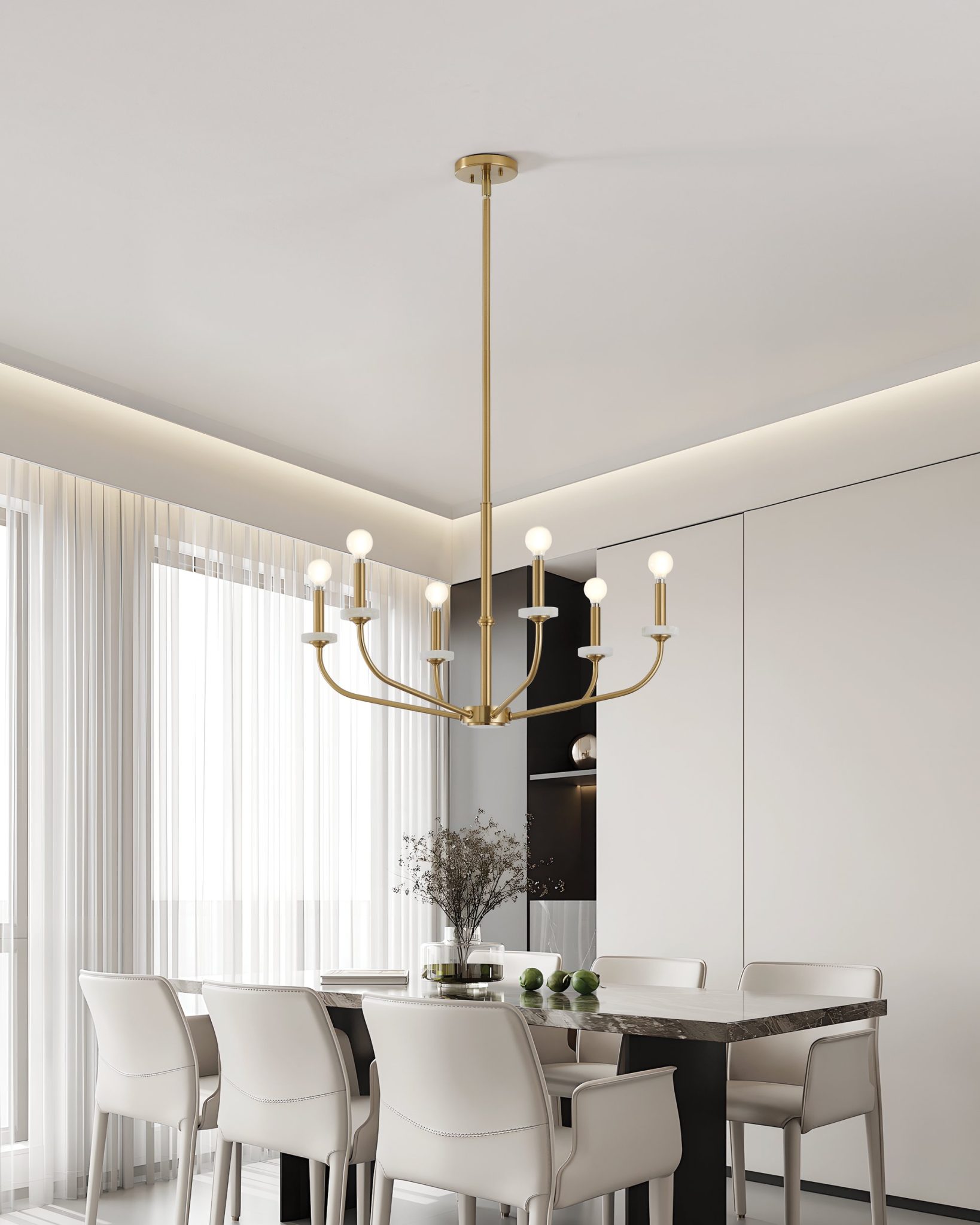 Découvrez Leah lustre 30 po à 6 lumières or brossé et onyx blanc