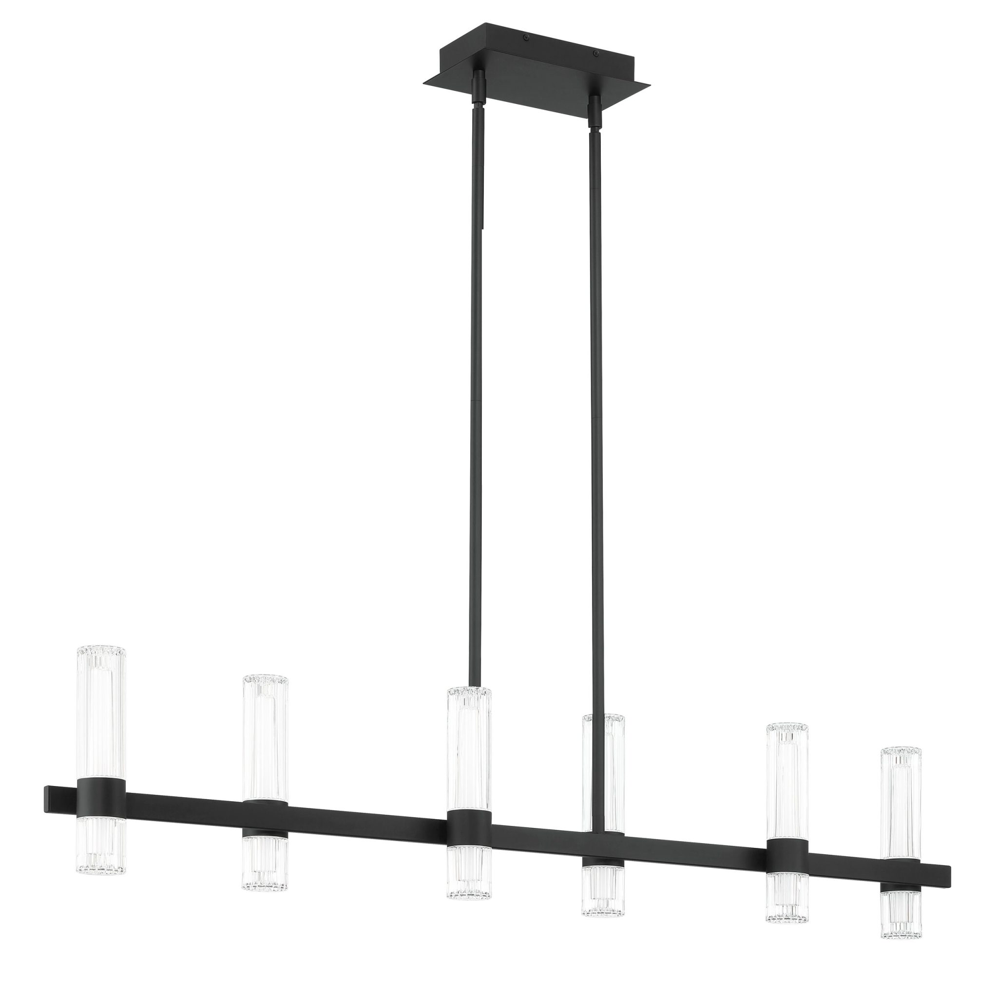 Découvrez Ristretto lustre linéaire DEL 50 po à 12 lumières noir mat avec abat-jours en acrylique clair nervuré et blanc