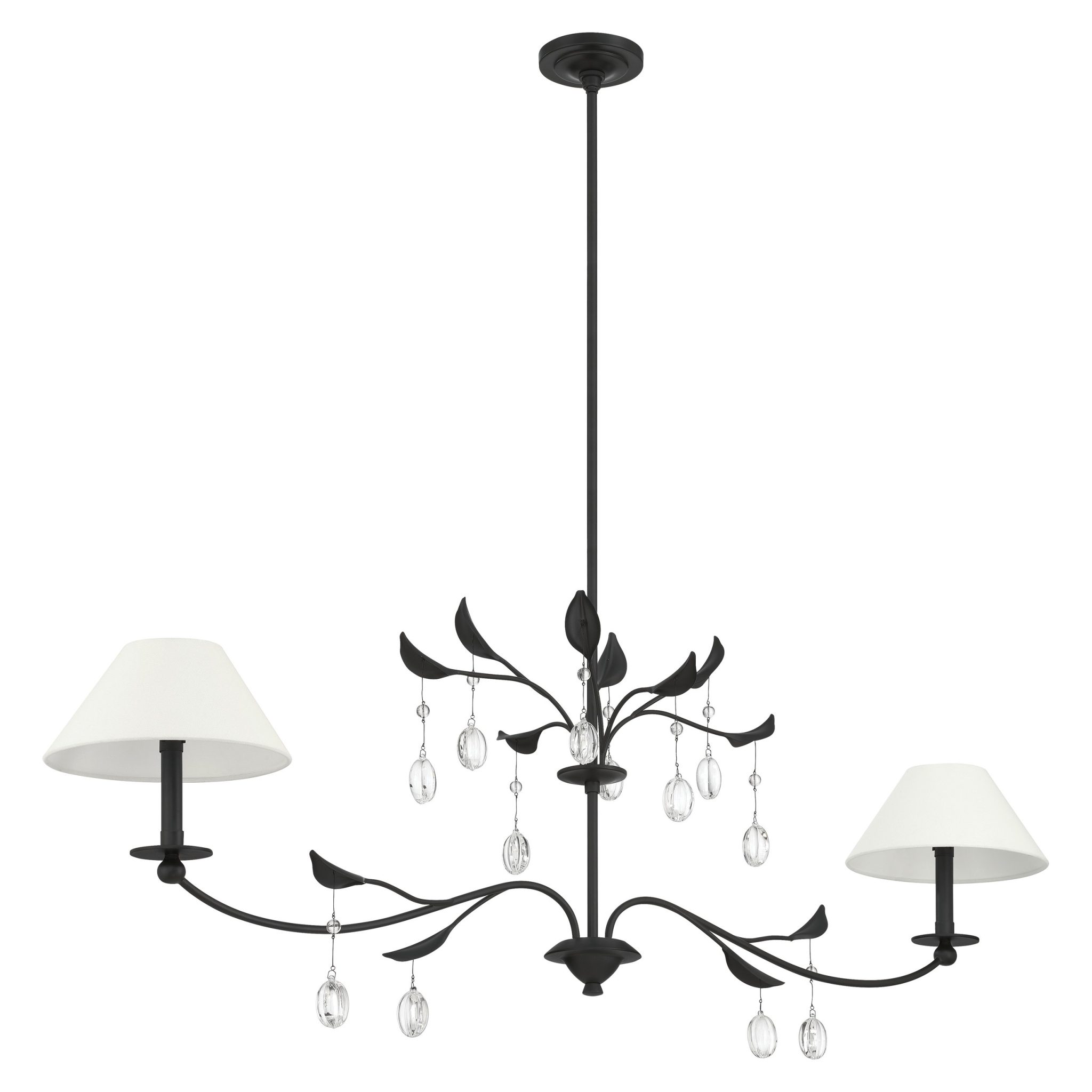 Découvrez Presley lustre linéaire 56 po à 2 lumières noir texturé avec gouttes de verre clair et abat-jours en lin blanc