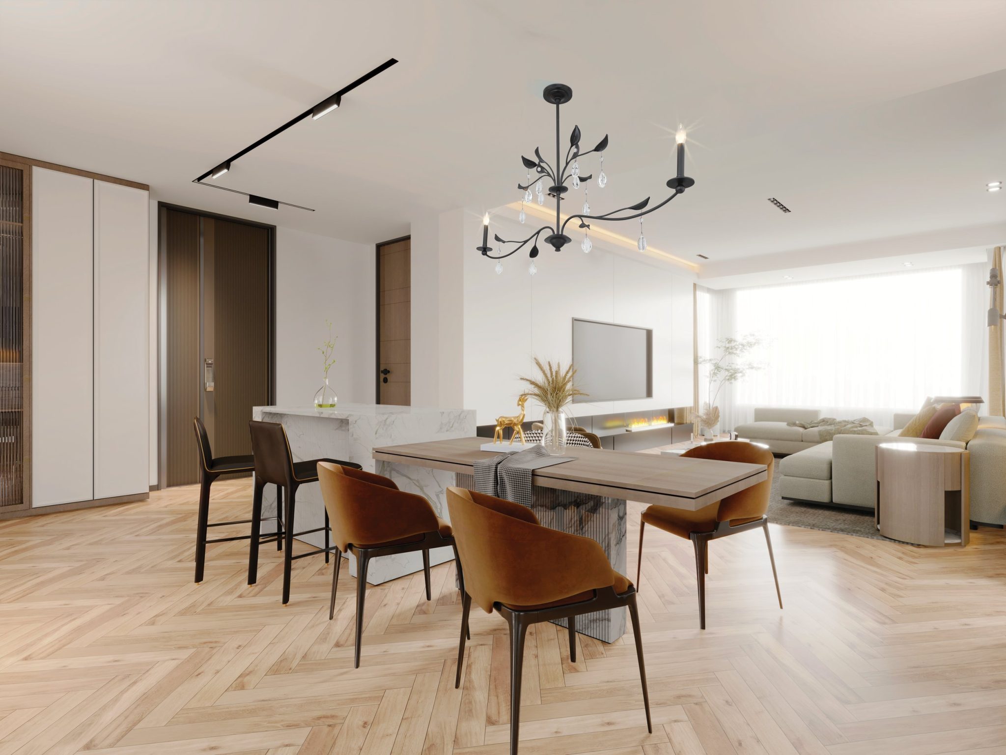 Le lustre linéaire Presley exprime toute la grâce de la nature à travers son design ramifié et sa finition noire texturée. Des gouttes de verre clair façonnées à la main brillent comme la rosée le long de la structure, tandis que des abat-jours en lin blanc diffusent une lumière douce et raffinée. Alliant inspiration naturelle et sophistication moderne, Presley apporte équilibre, texture et beauté intemporelle aux salles à manger et aux salons.