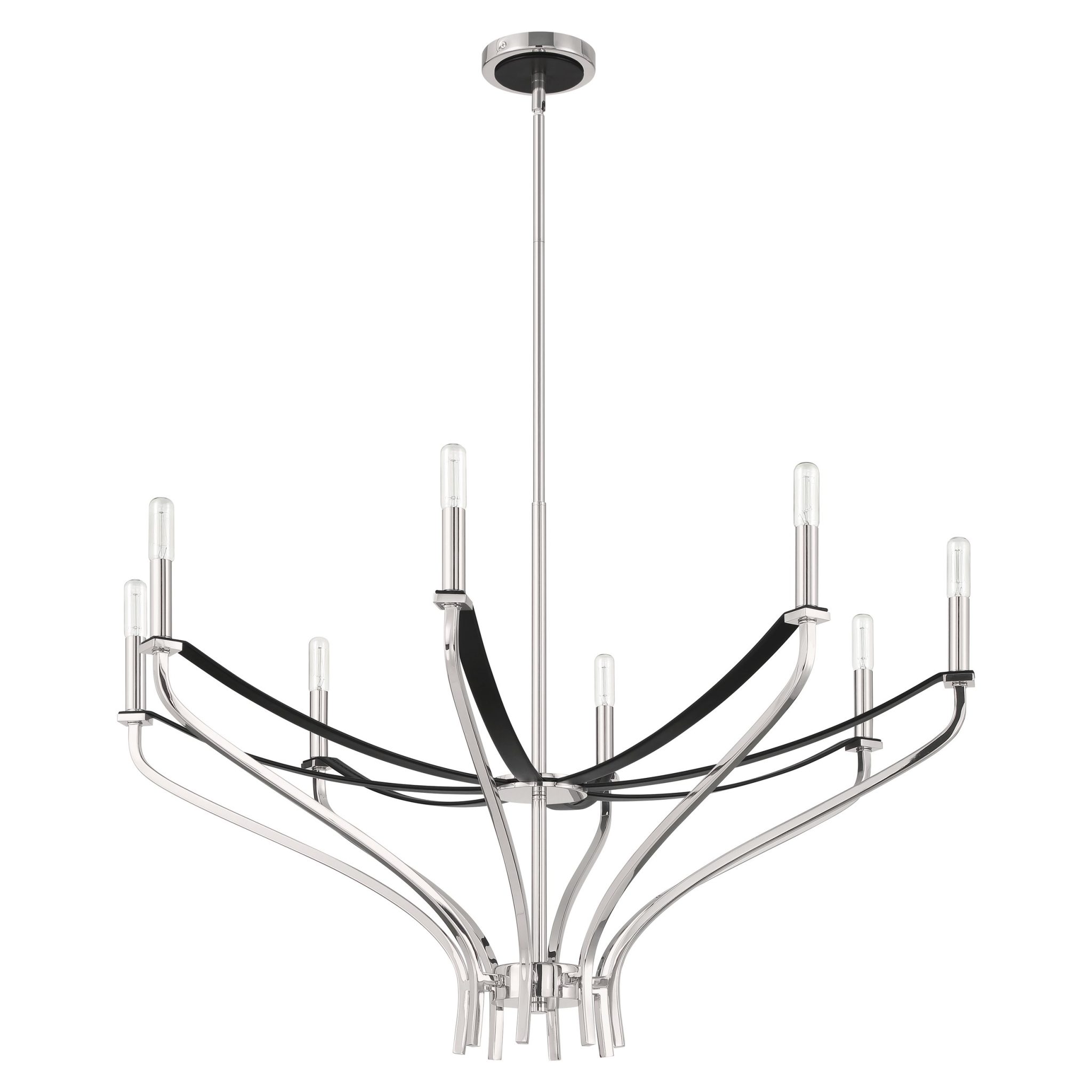 Découvrez Sussex lustre 36 po à 8 lumières nickel poli et faux cuir noir