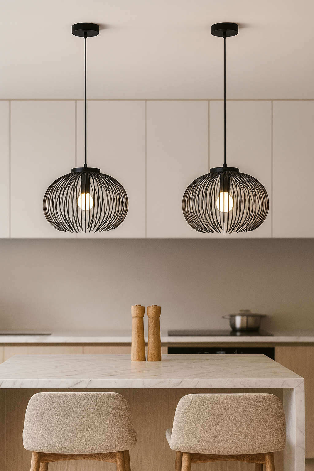 Un design aérien, élégant et plein de caractère. Cette collection met en valeur avec des broches métalliques courbées qui forment une sphère légère autour de l’ampoule, créant un magnifique jeu d’ombres et une lumière chaleureuse. Parfaite pour ajouter une touche graphique à un décor moderne, scandinave ou industriel chic.