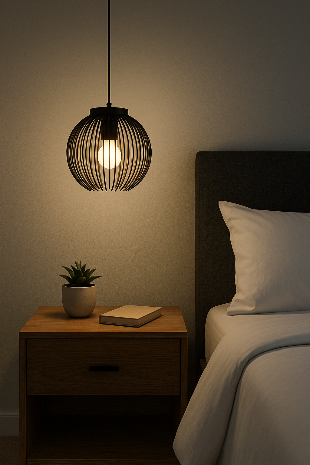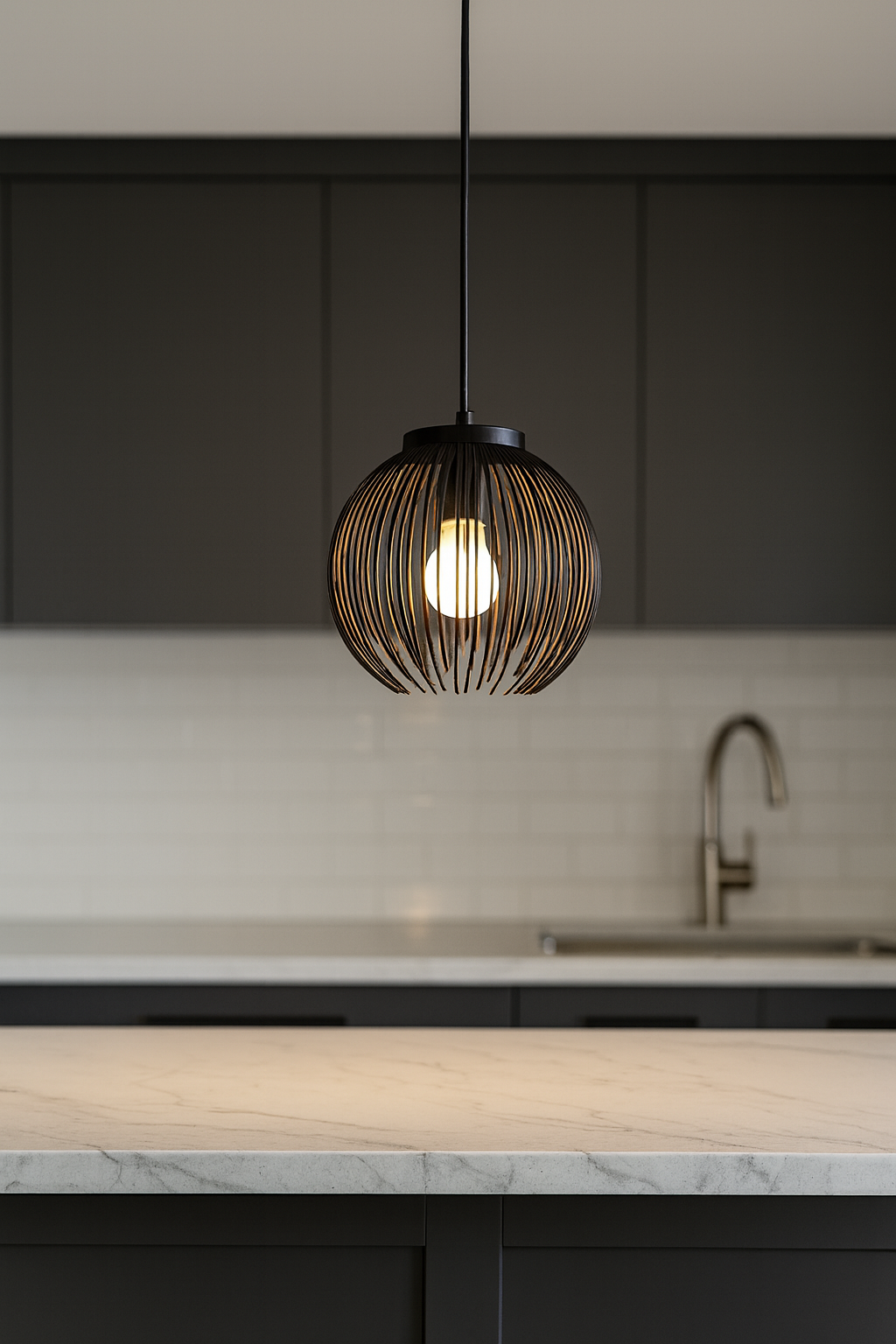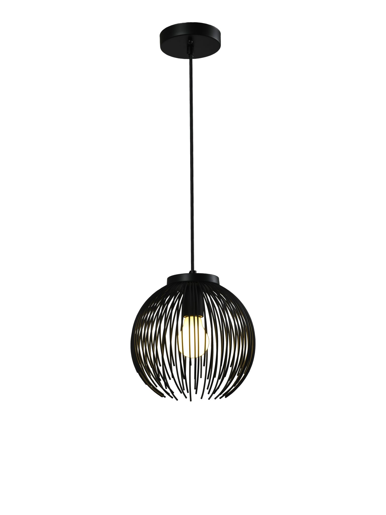 Ce luminaire suspendu se distingue par son abat-jour sphérique composé de fines tiges métalliques qui créent un jeu d’ombres et de lumière élégant. Idéal au-dessus d’un îlot de cuisine, d’une vanité de salle de bain, ou dans un hall d’entrée. Disponible en 3 finitions : blanc, noir et noir/or, pour s’harmoniser facilement à différents styles d’intérieur.