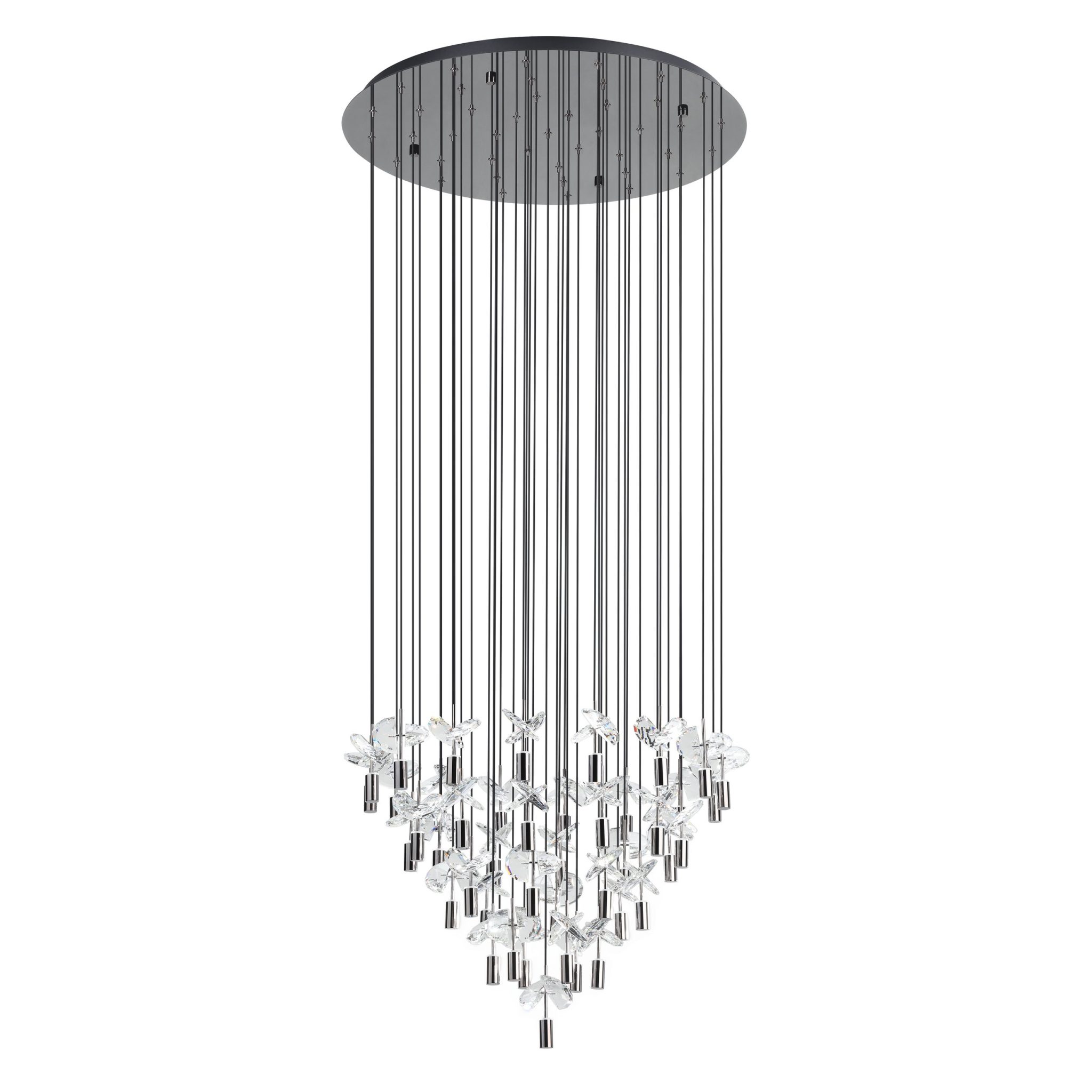 Découvrez le Comareira luminaire suspendu DEL 3CCT 30 po à 43 lumières chrome noir avec cristal de verre clair