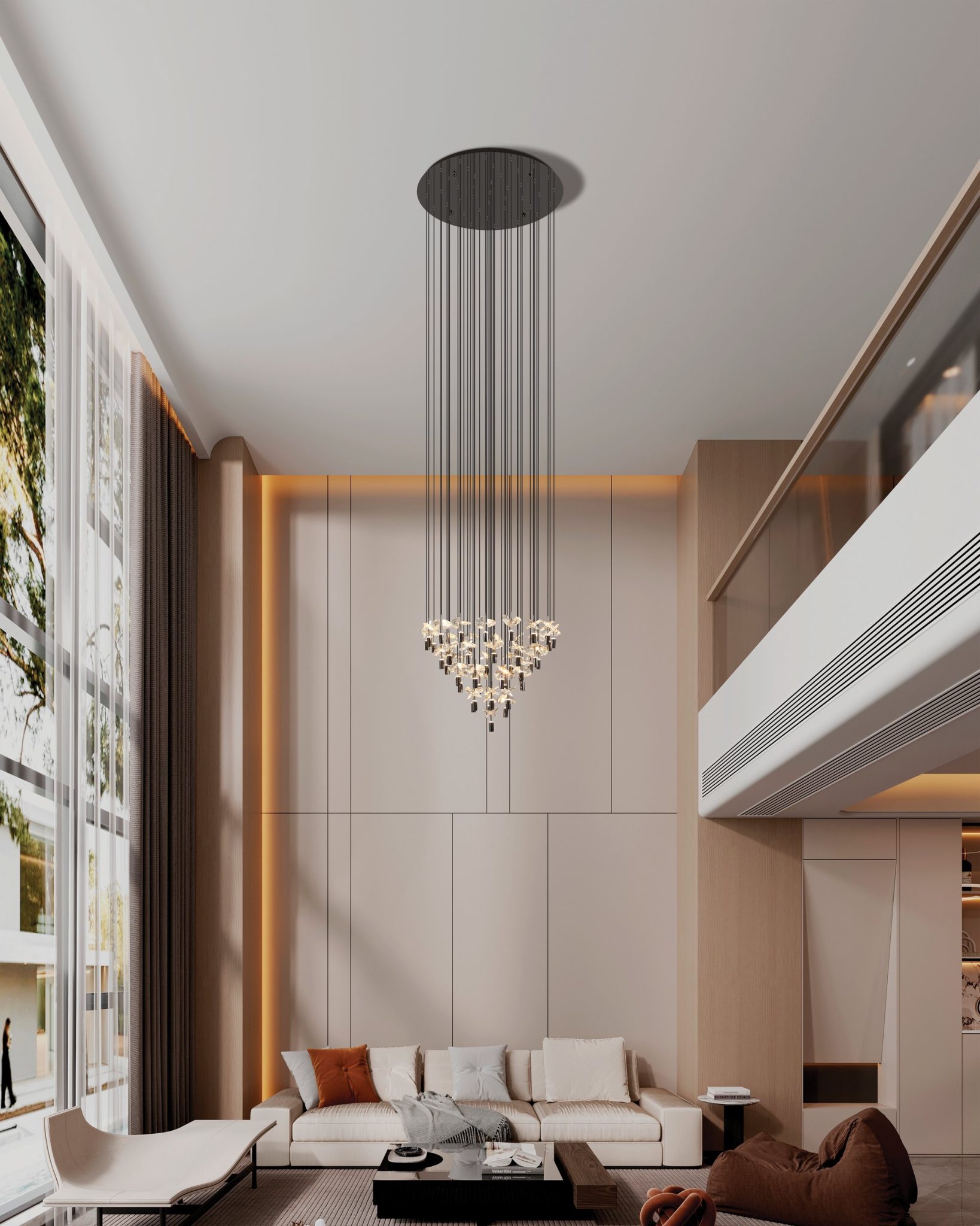 Le luminaire suspendu DEL Comareira est une composition lumineuse éclatante alliant lumière et cristal. Suspendu à une canopée ronde en chrome noir, de fins câbles soutiennent 43 points lumineux distincts, chacun orné de formes en cristal clair facetté qui réfractent et diffusent la lumière avec une brillance exceptionnelle. Les éléments superposés créent mouvement et scintillement, projetant de subtiles réflexions prismatiques dans l’espace. Chaque accent en cristal semi-circulaire peut être pivoté et ajusté individuellement, permettant de personnaliser l’effet visuel et le jeu de lumière. Doté d’une hauteur de suspension ajustable et de la technologie DEL 3CCT intégrée, le Comareira offre un éclairage sur mesure et un impact visuel saisissant pour les grandes entrées, les salles à manger ou les espaces de vie ouverts.