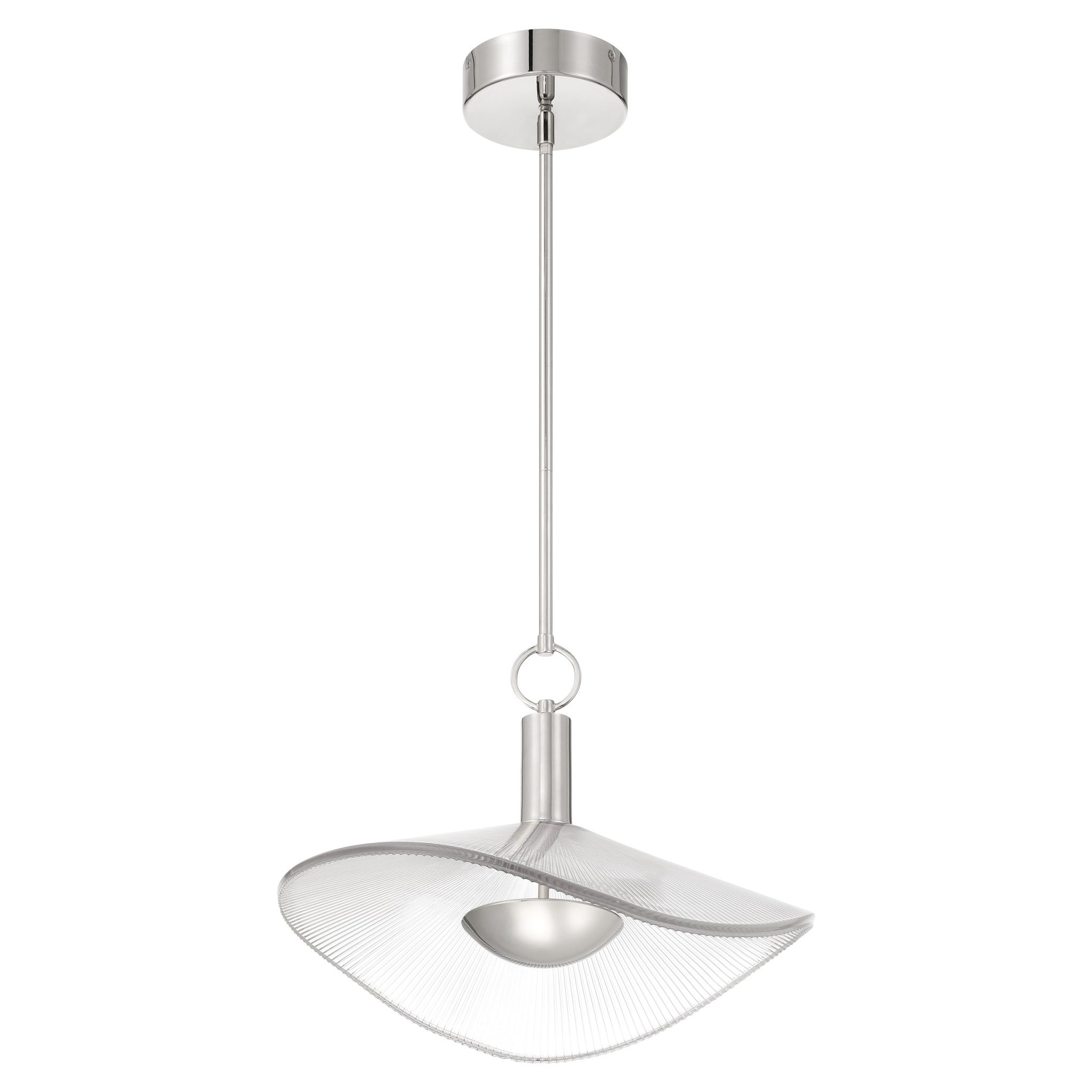 Découvrez Novella luminaire suspendu convertible DEL 18 po nickel poli avec abat-jour en verre clair nervuré