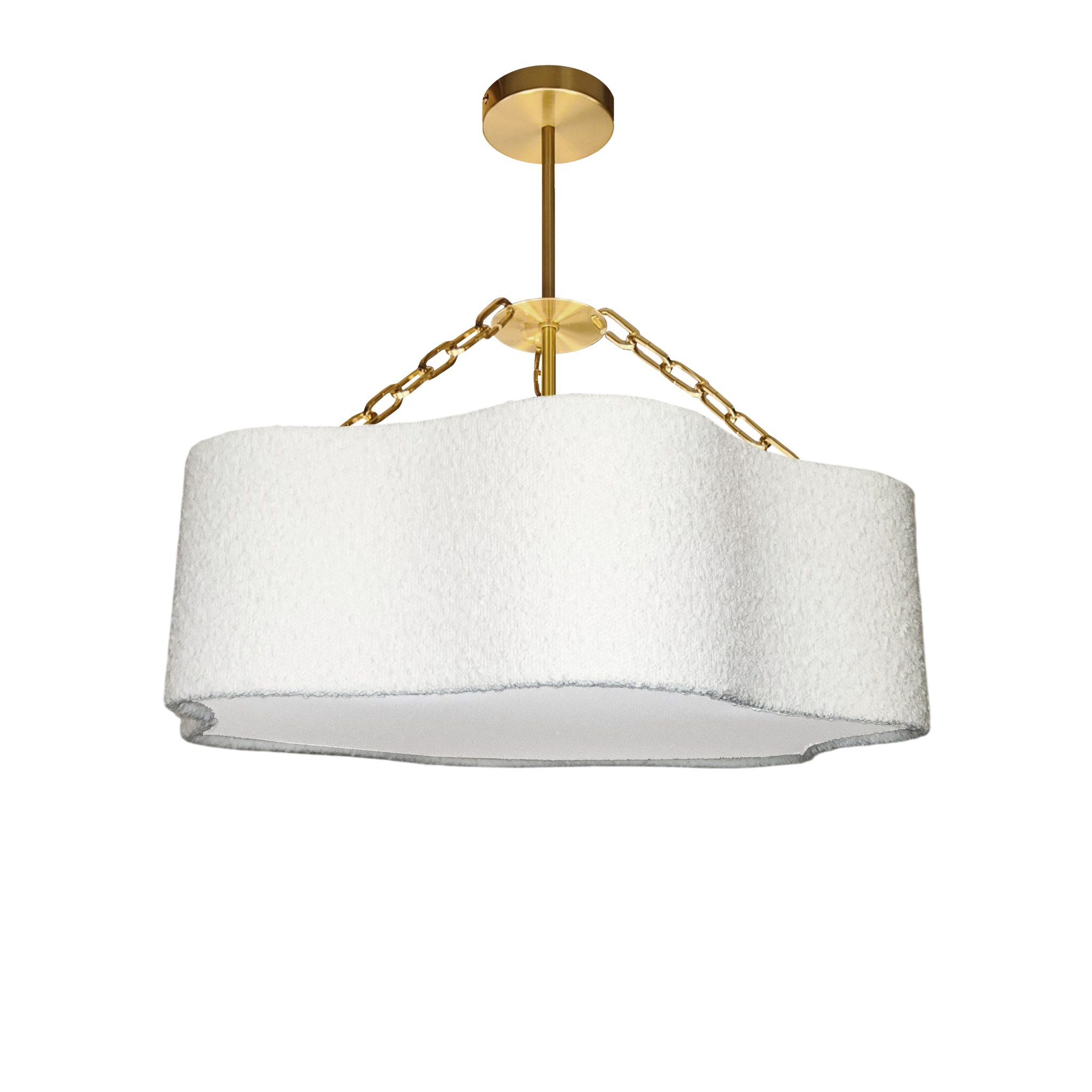 Découvrez DALIA Luminaire suspendu, fini laiton vieilli avec abat-jour en tissu bouclé blanc, 24po Largeur, 7po Hauteur, 47po Hauteur max., 4 x 60W E26