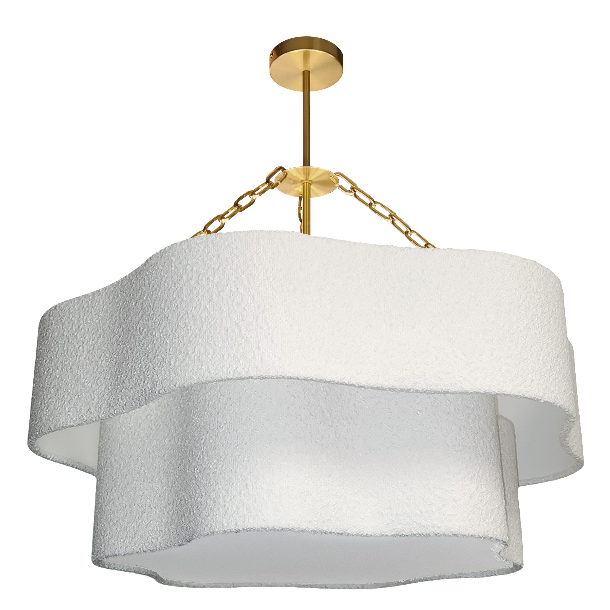 Découvrez DALIA Luminaire suspendu, fini laiton vieilli avec abat-jour en tissu bouclé blanc, 32po Largeur, 14po Hauteur, 54po Hauteur max., 4 x 60W E26