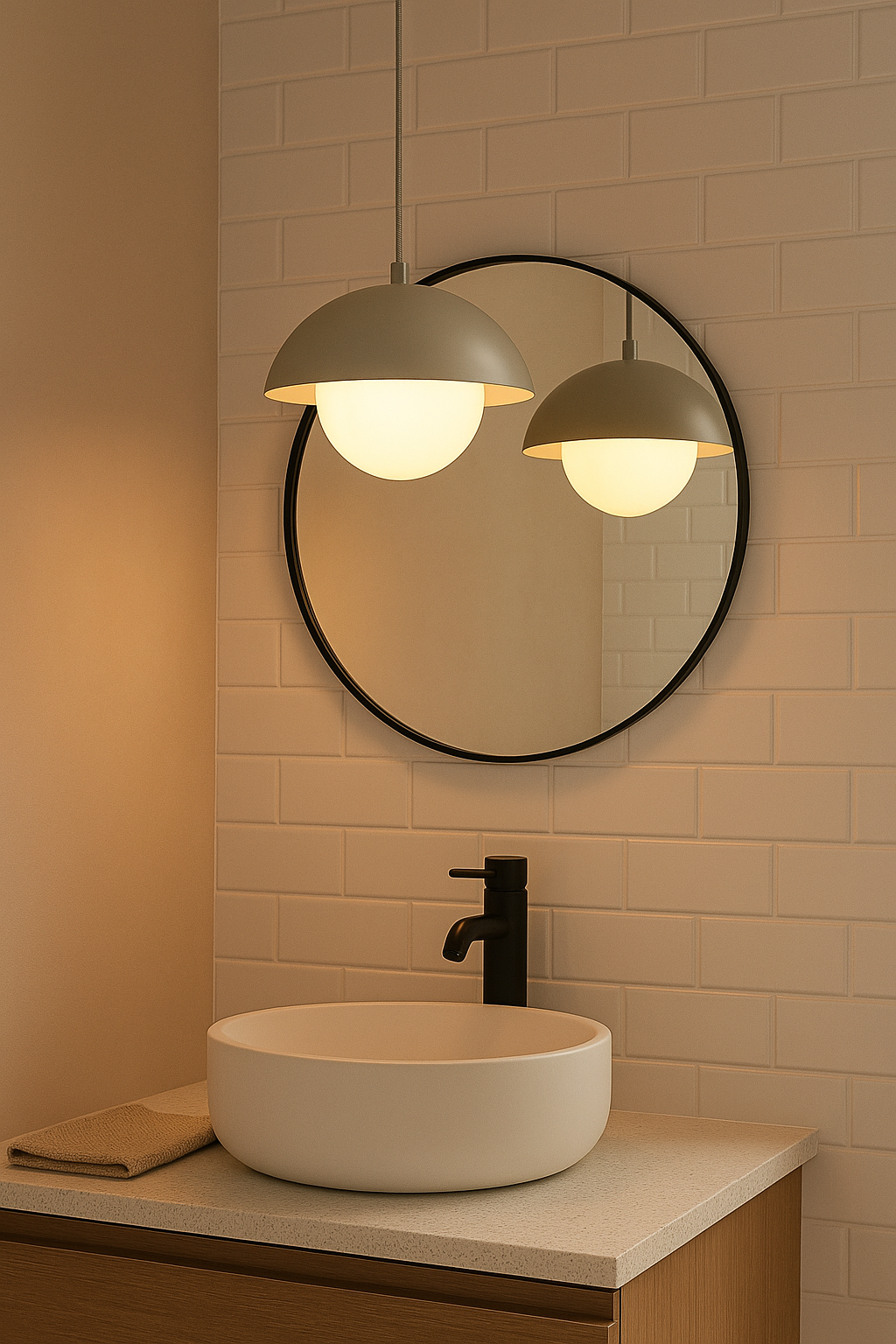Ce luminaire au design épuré marie la douceur des formes arrondies à une esthétique moderne et minimaliste. Son abat-jour en forme de dôme met en valeur un globe diffusant une lumière douce et uniforme, parfaite pour créer une ambiance chaleureuse dans le hall d’entrée, la salle de bain ou à l’îlot.