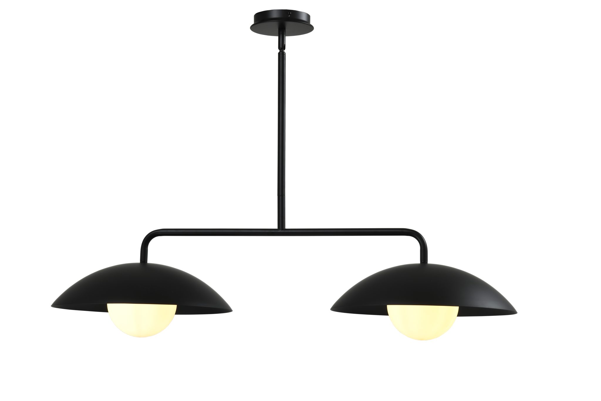 Alliant originalité et élégance, ce luminaire se distingue par sa silhouette audacieuse composée de deux abat-jours légèrement incurvés qui mettent en valeur les globes givrés, lesquels diffusent une lumière douce et enveloppante. Sa forme sculpturale en fait une pièce décorative idéale pour une salle à manger, un îlot, ou même un bureau, apportant une touche contemporaine et raffinée à tout espace.
