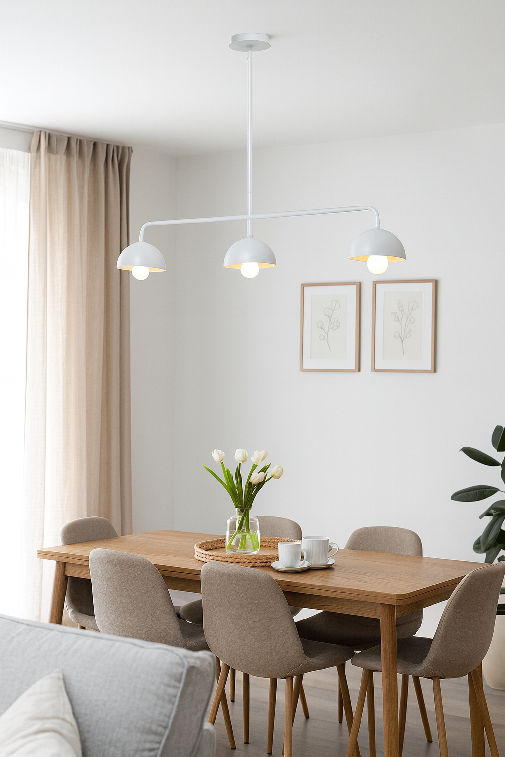 Grâce à son design minimaliste inspiré du style scandinave, cette collection s’intègre aussi bien dans un décor contemporain que classique. Offerte en plusieurs configurations, plafonnier, suspension simple ou linéaire à deux ou trois dômes, elle s’adapte à tous les espaces : cuisine, salle à manger, corridor ou chambre. Le verre opalin diffuse une lumière douce et chaleureuse, idéale pour créer une ambiance conviviale et accueillante.
