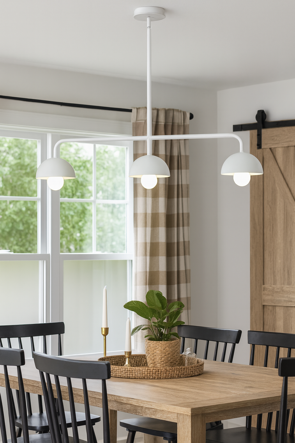 Ce luminaire au style minimaliste, rehaussé par une structure métallique aux lignes droites et équilibrées, s’intègre harmonieusement autant dans un décor contemporain que scandinave ou classique. Parfait pour créer une ambiance accueillante dans la salle à manger, au-dessus d’un îlot de cuisine ou même dans un espace de travail.