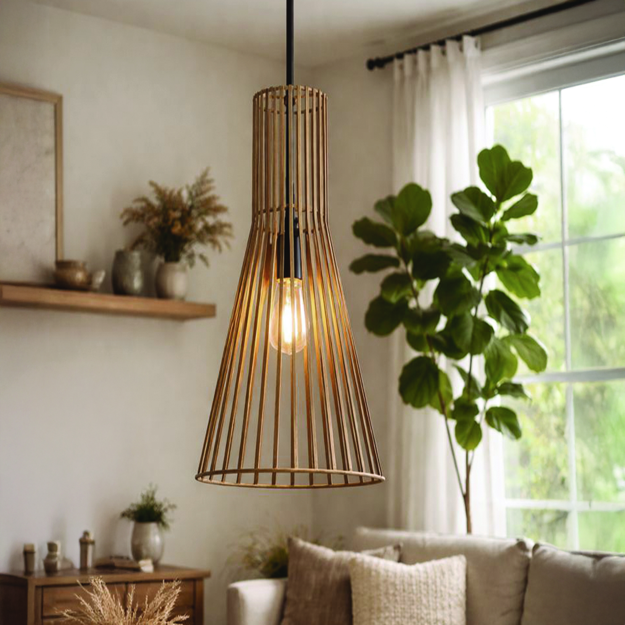 La suspension ELIM allie style contemporain et inspiration biophilique, associant une structure noire mate à une finition marron brossé pour un rendu à la fois authentique et raffiné. D’une largeur de 23 cm, cette suspension à une lumière offre un équilibre parfait entre compacité et présence sculpturale, ce qui en fait un élément décoratif idéal pour les cuisines, les salles à manger ou les salons. Ses textures naturelles et ses tons apaisants sont conçus pour apporter sérénité et bien-être à votre intérieur. Grâce à sa tige réglable en hauteur de 83 à 190 cm, ELIM s’adapte facilement à différentes hauteurs de plafond et configurations d’espace. Conçue pour une ampoule de type A de 60 W, cette suspension diffuse une lumière chaude et ciblée, résolument moderne.