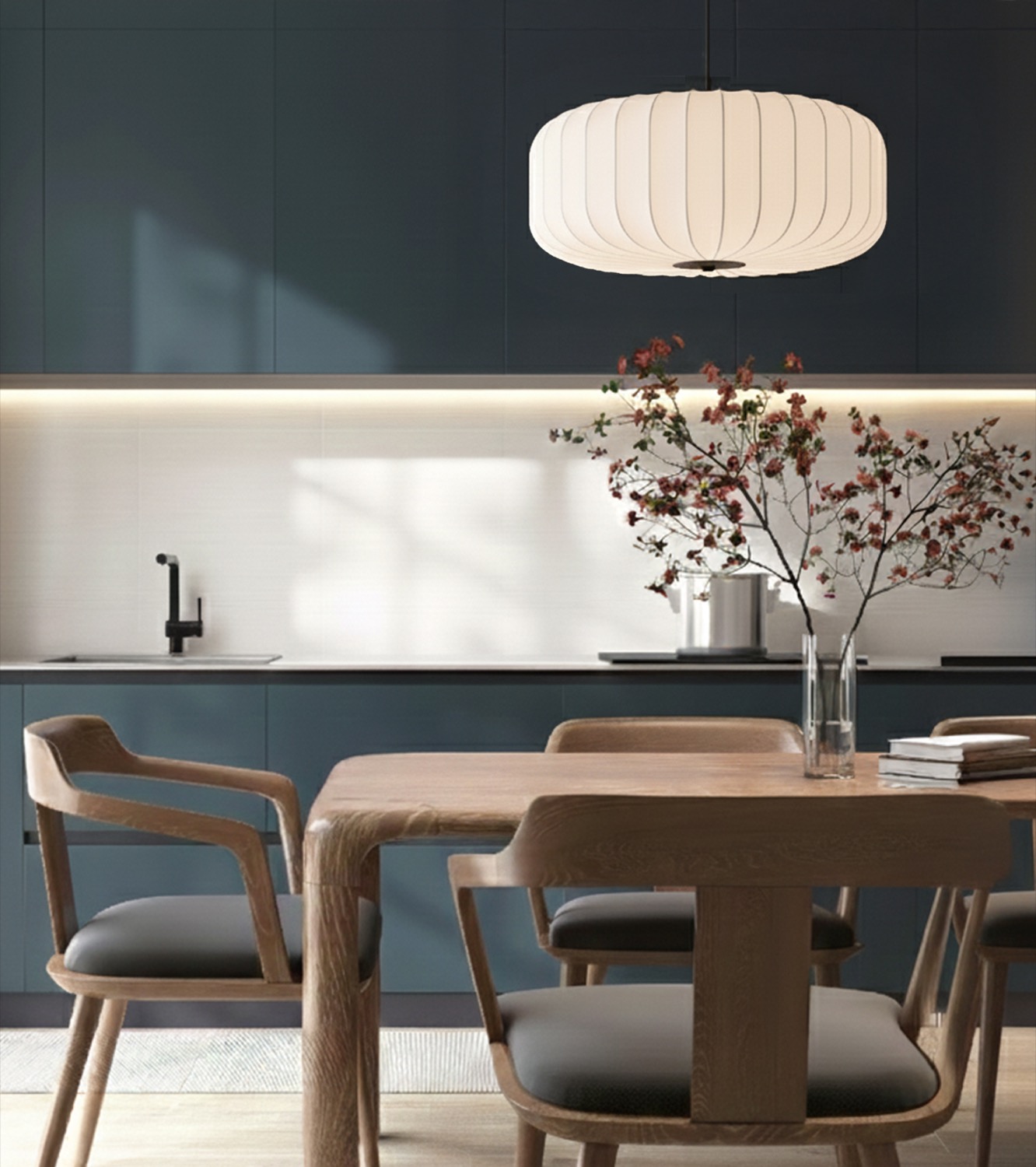 La suspension ELLE à trois lumières incarne une élégance discrète, empreinte d’une inspiration wabi-sabi qui célèbre la simplicité et l’équilibre naturel. Son abat-jour rond en tissu blanc diffuse une lumière douce, créant une atmosphère de calme et de confort. Sa structure mate et ses proportions subtiles lui permettent de s’intégrer harmonieusement aux intérieurs contemporains, Japandi ou de style transitionnel. Idéale au-dessus d’une table à manger, d’un îlot de cuisine ou d’un coin salon cosy, ELLE apporte une touche de raffinement à la fois intemporelle et ancrée dans le réel. Grâce à sa hauteur réglable et sa configuration à trois lumières, cette suspension offre une grande flexibilité d’utilisation et un style durable.