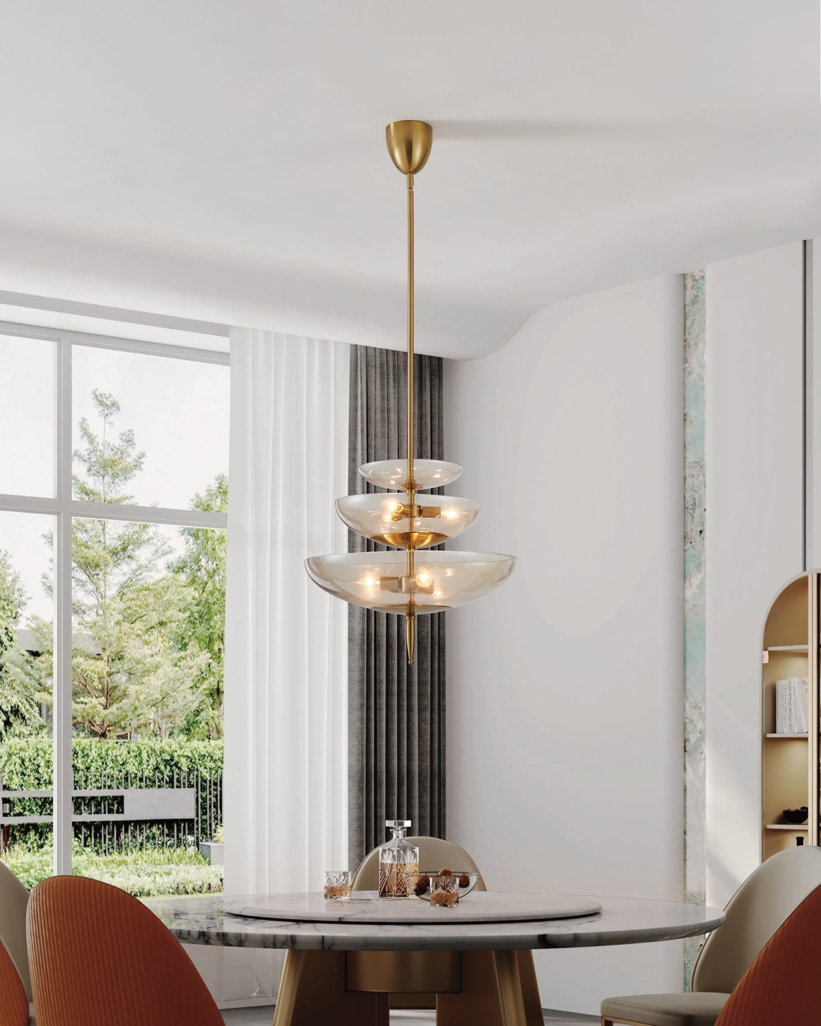 Conçu pour s’intégrer harmonieusement à tout environnement, le luminaire suspendu convertible Fiorello évoque le romantisme intemporel du design italien du milieu du siècle dernier. Ses accents en or brossé se marient à la lueur chaleureuse des abat-jours en verre ambre fumé pour créer une ambiance feutrée et invitante. Avec ses proportions gracieuses, ses détails raffinés et sa configuration convertible, Fiorello transforme n’importe quel espace en une expression lumineuse d’élégance et d’art contemporain.