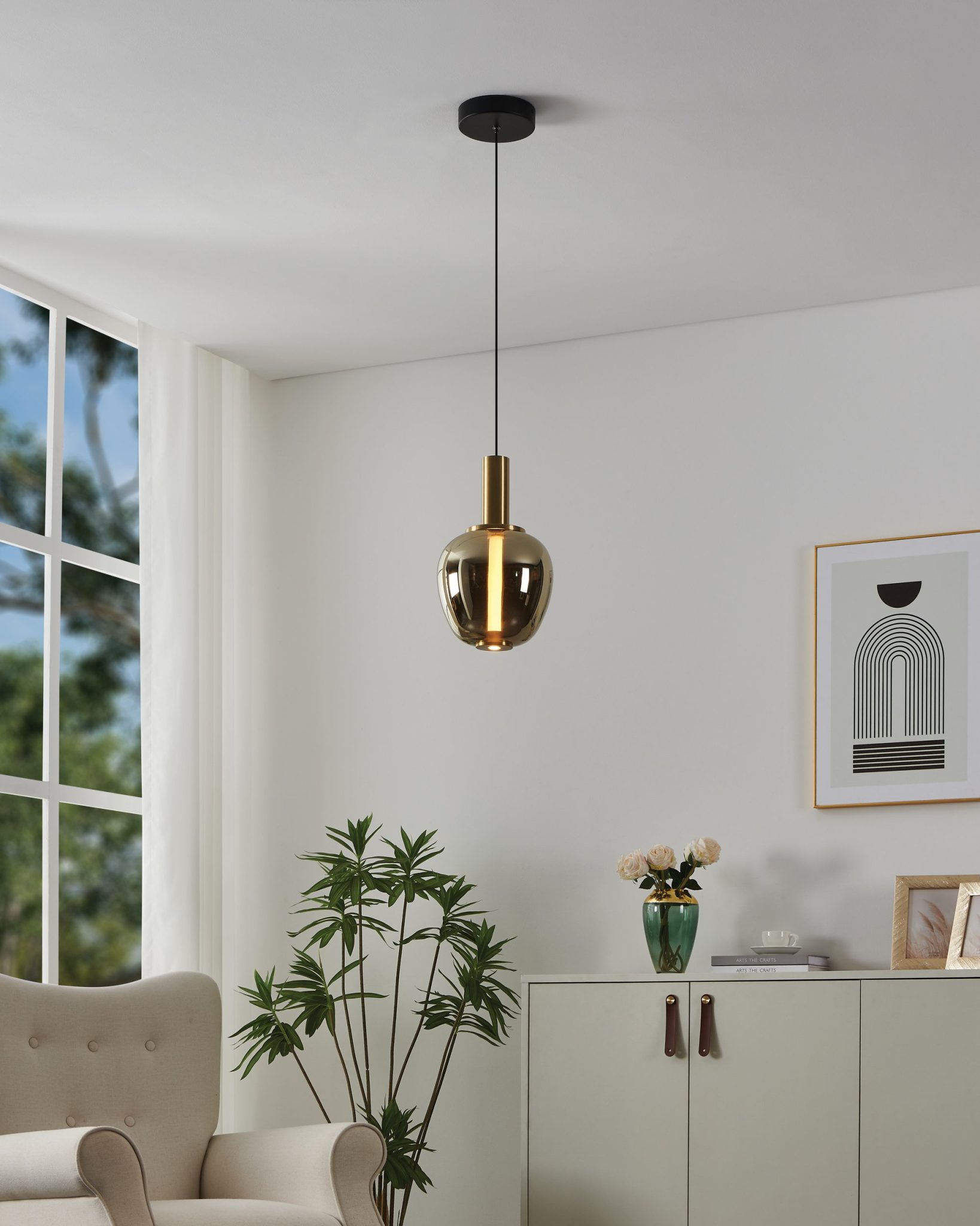 Le luminaire suspendu DEL Fruitera de 8 pouces est un accent raffiné qui marie un fini noir et or brossé à un abat-jour en verre fumé doré profond. Éteint, le verre présente une surface lisse et miroir, révélant une profondeur métallique chaleureuse. Une fois allumé, un diffuseur interne en acrylique dissimulé émerge délicatement, dévoilant un cœur lumineux qui transforme entièrement son apparence. Cet effet superposé crée dimension et contraste subtil entre le verre réfléchissant et la lumière adoucie. Doté d’une hauteur de suspension ajustable et de la technologie DEL 3CCT intégrée, il permet de personnaliser facilement sa présence verticale ainsi que la chaleur de son éclat afin de s’harmoniser parfaitement à votre espace.