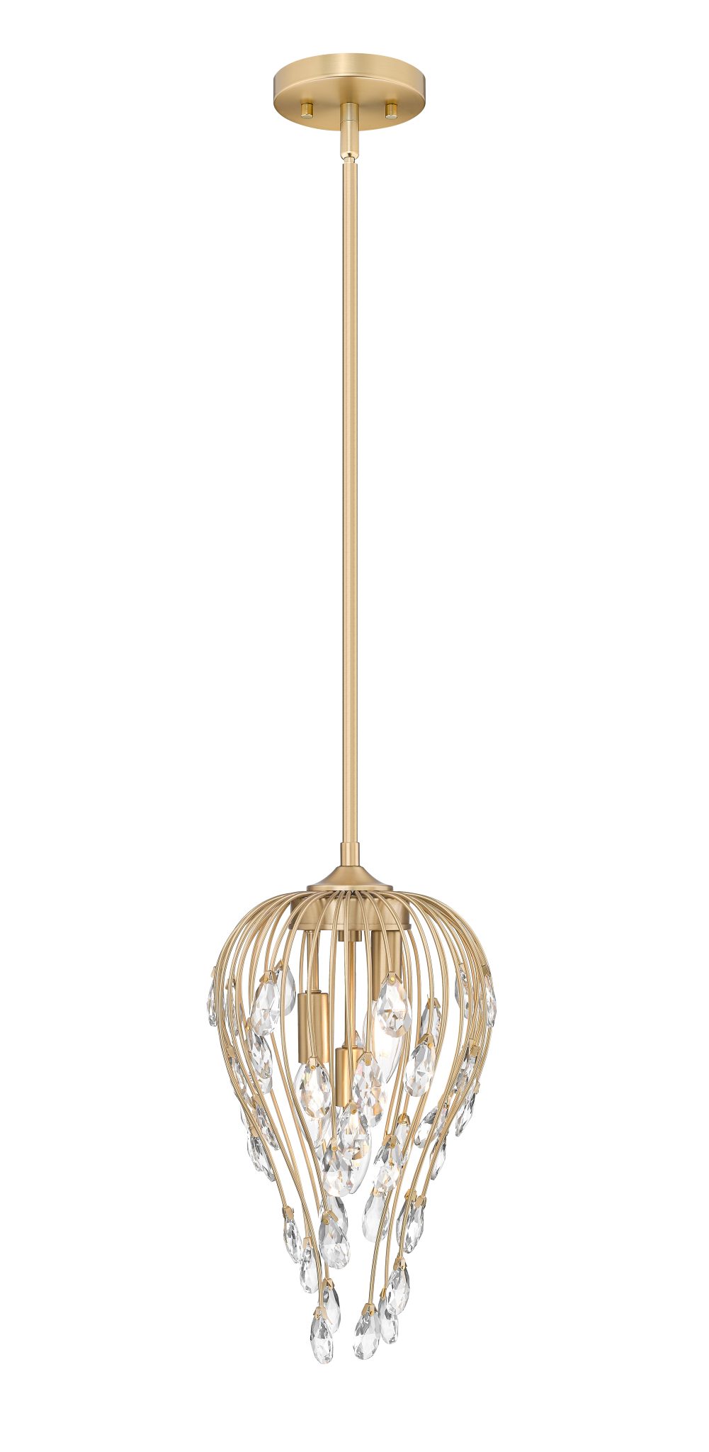 Laissez-vous séduire par le motif botanique de cette suspension glamour à trois lumières, un luminaire exceptionnel aux lignes épurées et à la structure métallique dorée moderne. De délicates pièces de cristal, évoquant des bourgeons coiffant des tiges, diffusent une lumière douce et créent une ambiance luxueuse. Ce luminaire à intensité variable trouvera parfaitement sa place dans les chambres, les salles à manger, les couloirs et les salons.