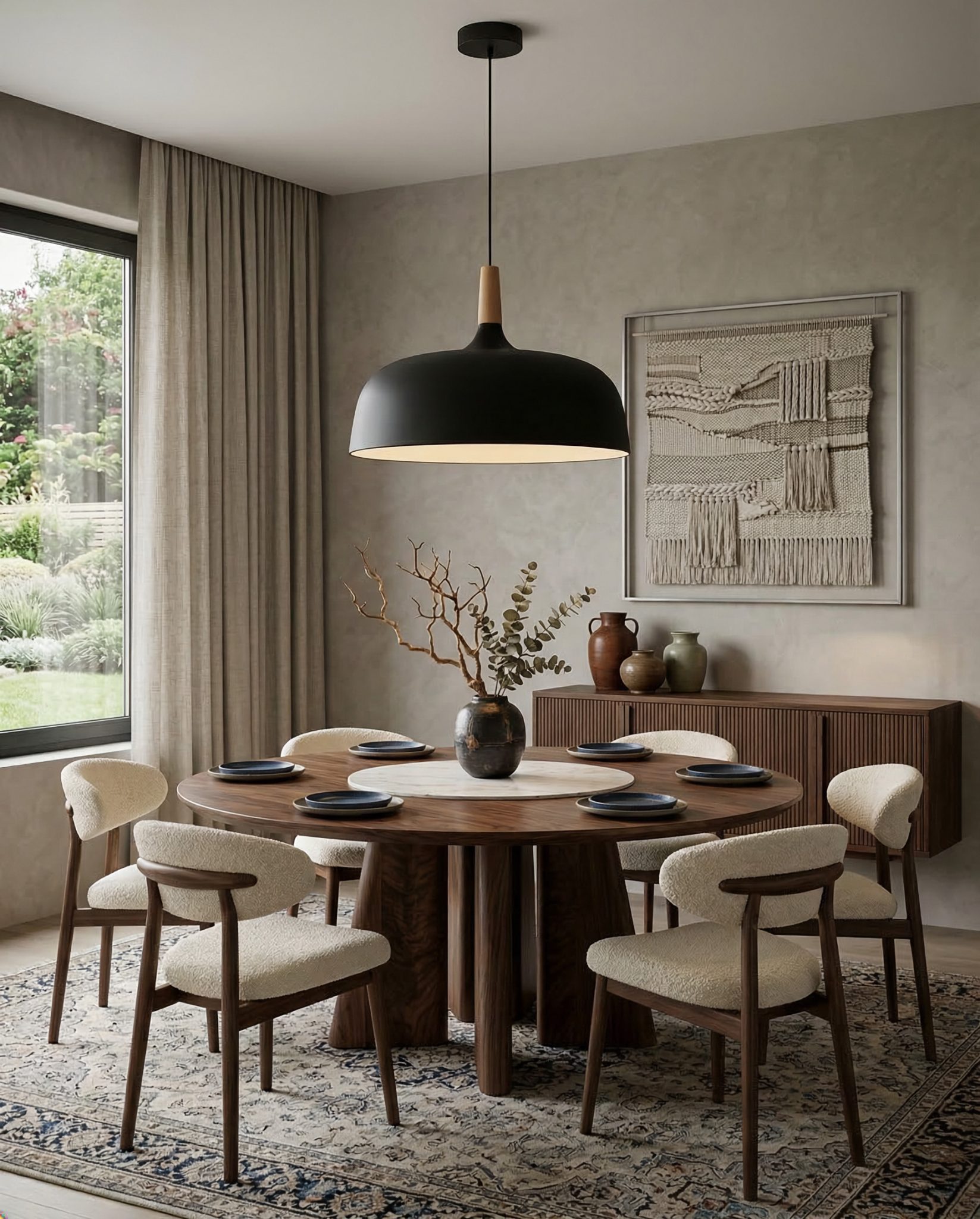 Découvrez le Luminaire suspendu fini noir mat, 18,9po Diamètre, 15,74po Hauteur, 83po Hauteur max., 60W E26
