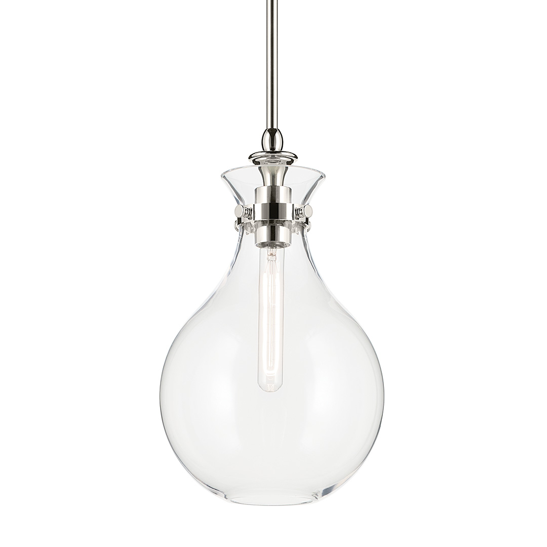 Découvrez la Suspension Laria 9,75 pouces à une lumière avec verre transparent et finition nickel poli