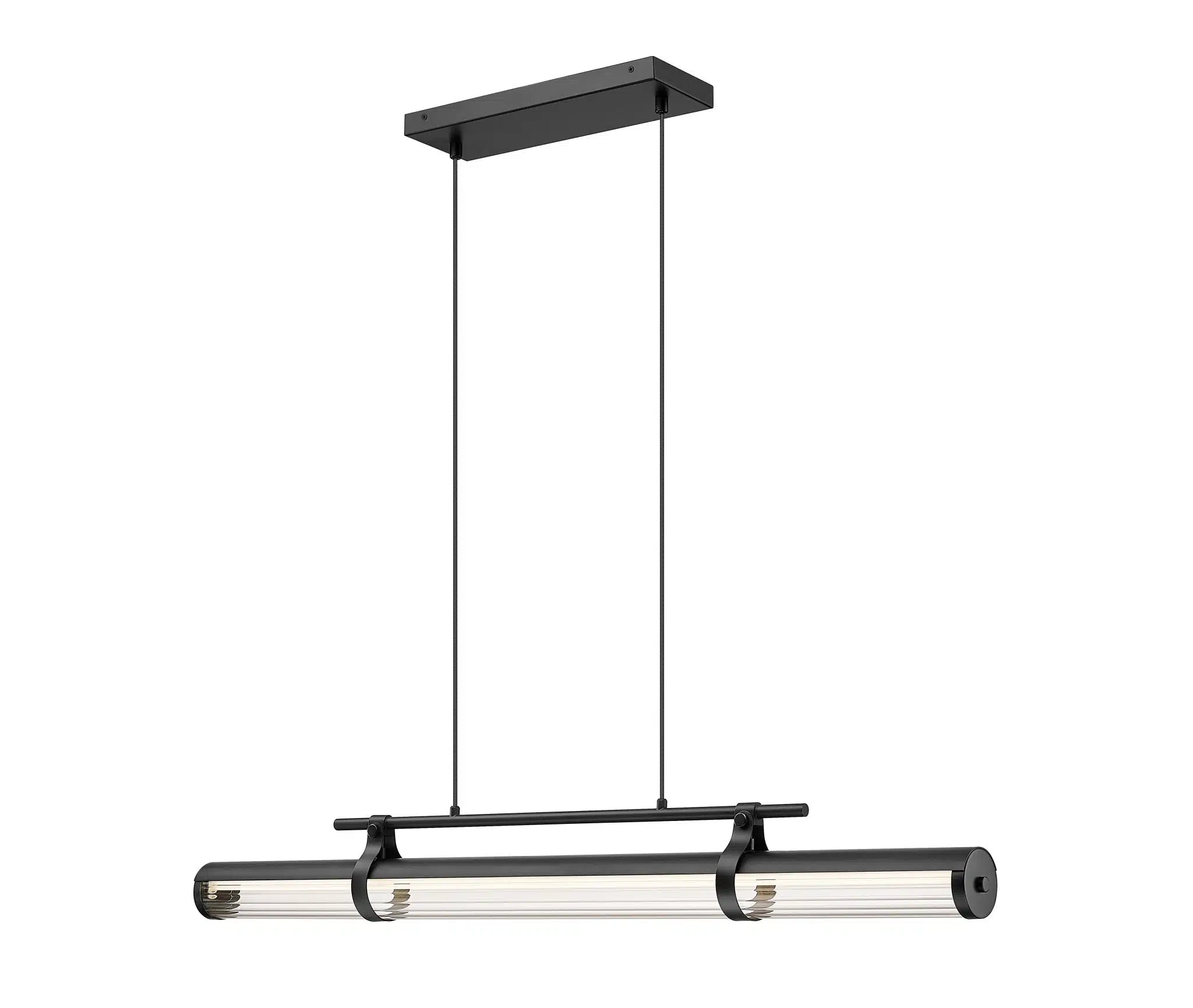 Intemporel et d’inspiration industrielle, ce lustre linéaire à une lumière apporte une touche d’originalité et de caractère aux espaces horizontaux. Admirez sa structure métallique noire mate aux finitions soignées : suspendu par un câble, il diffuse une lumière élégante à travers un abat-jour cylindrique en verre cannelé transparent, orientable pour un éclairage optimal. Gradable et doté d’un variateur d’intensité lumineuse permettant de créer l’ambiance souhaitée, ce lustre s’harmonise parfaitement avec les îlots de cuisine, les bars et autres espaces intérieurs.