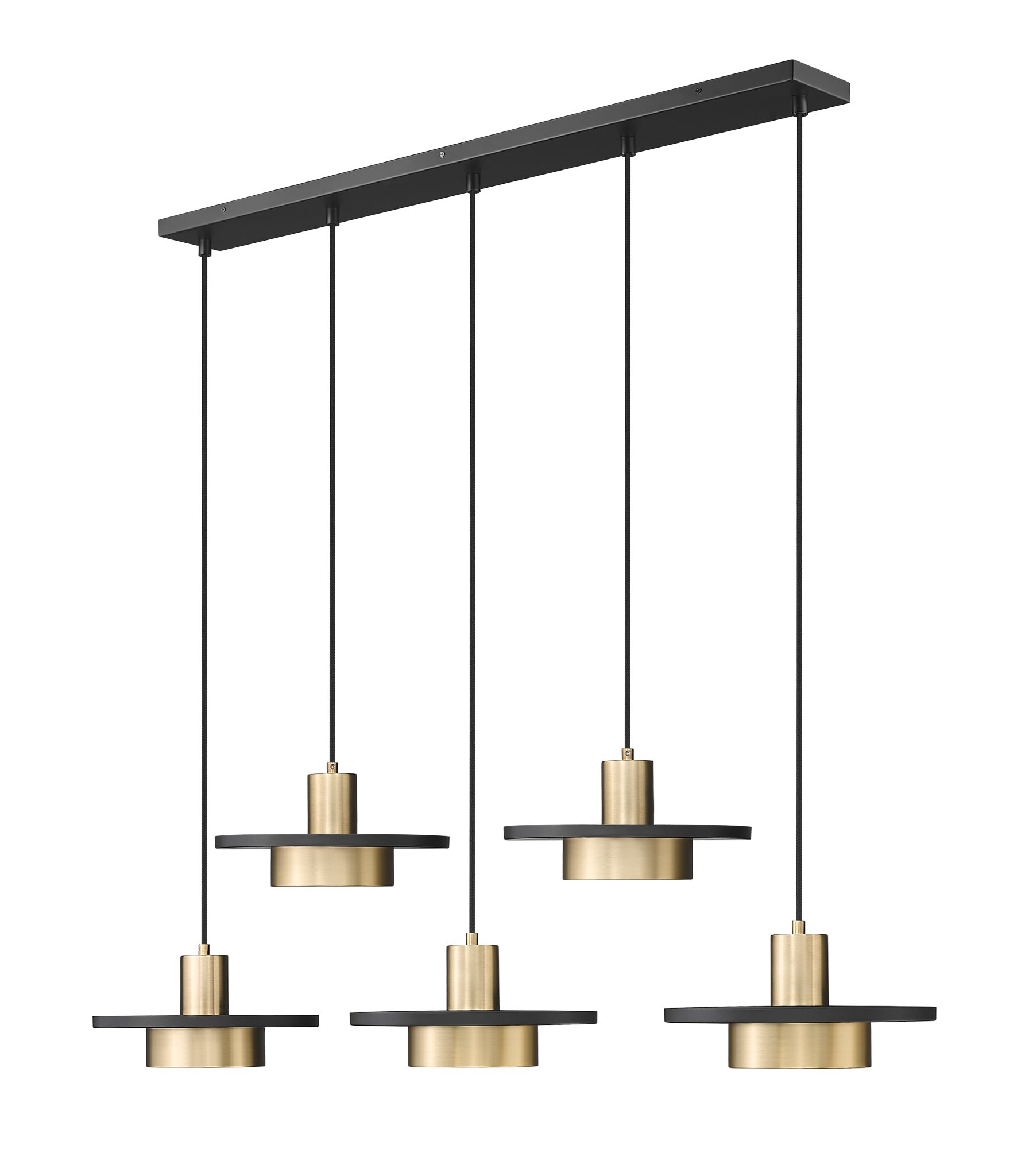 Lustre linéaire à 5 lumières, Noir mat, Or moderne