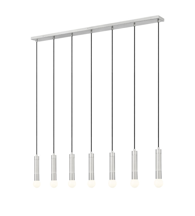 Découvrez STARI Luminaire suspendu fini nickel brossé, 54po Longueur, 11po Hauteur, 196,9po Hauteur max., 7 x 60W, E26