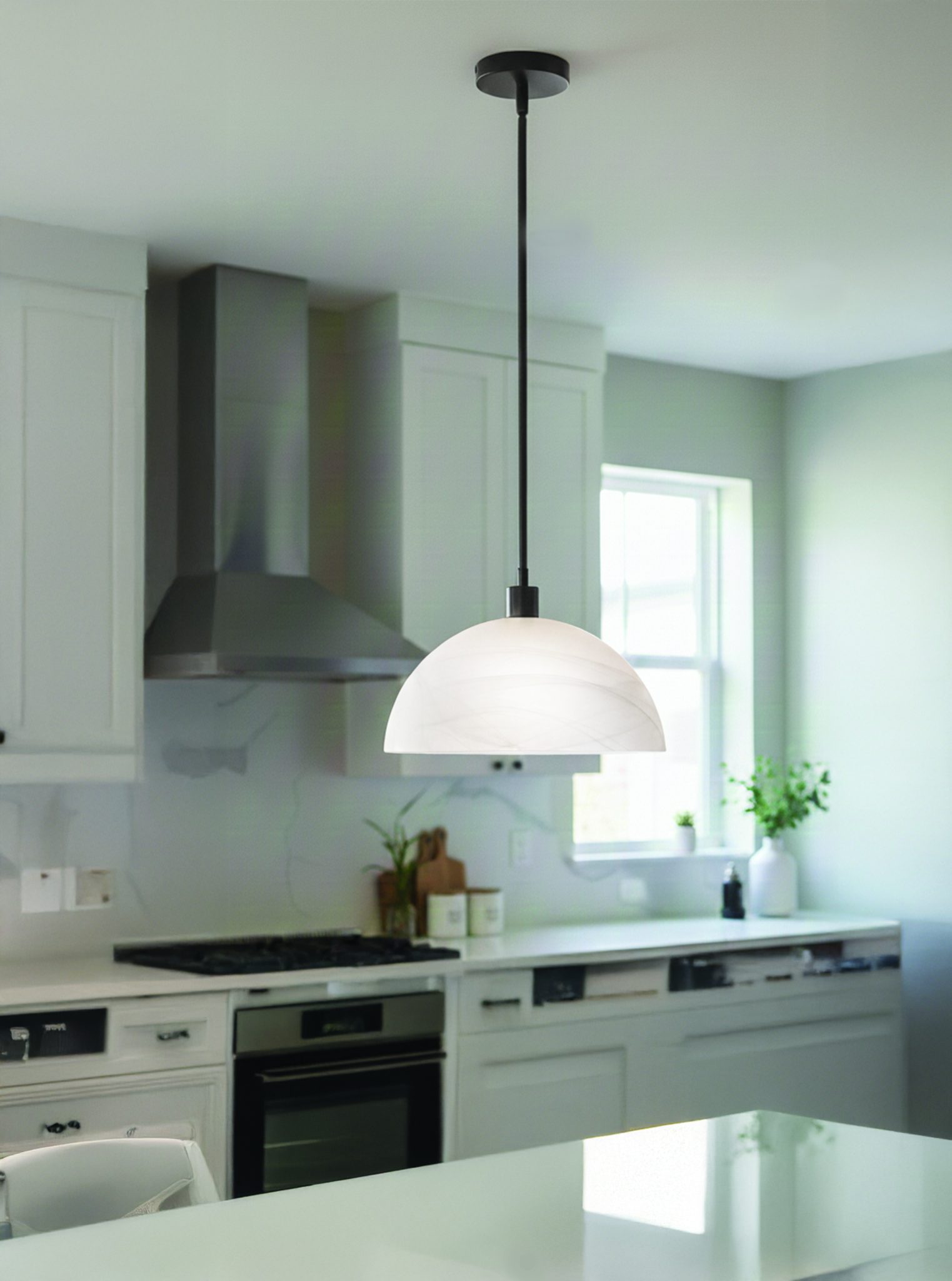 La suspension MAREK à une lumière de 33 cm incarne l’essence même du luxe discret, où les finitions mates et les textures agréables au toucher priment sur l’excès de brillance. Une finition noire mate ancre l’abat-jour en verre albâtre légèrement bombé, dont la surface marbrée apporte profondeur et raffinement. Le verre diffuse une lumière chaude et nuancée, créant une ambiance apaisante et sereine, idéale pour instaurer un climat de calme au quotidien. Avec ses 33 cm de diamètre, MAREK offre un éclairage équilibré sans être éblouissante, ce qui la rend parfaite pour les cuisines, les entrées ou les salles à manger. Son profil intemporel, sa fabrication robuste et son élégance subtile font de cette suspension à une lumière un choix durable et sophistiqué, loin des tendances éphémères.