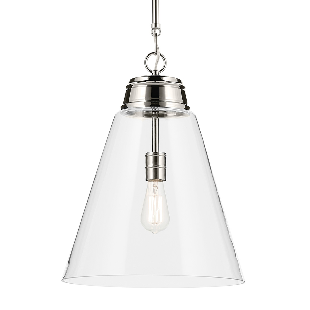 Découvrez la Suspension Marsailli 19,75 po à une lumière, grand modèle, avec verre transparent et finition nickel brossé