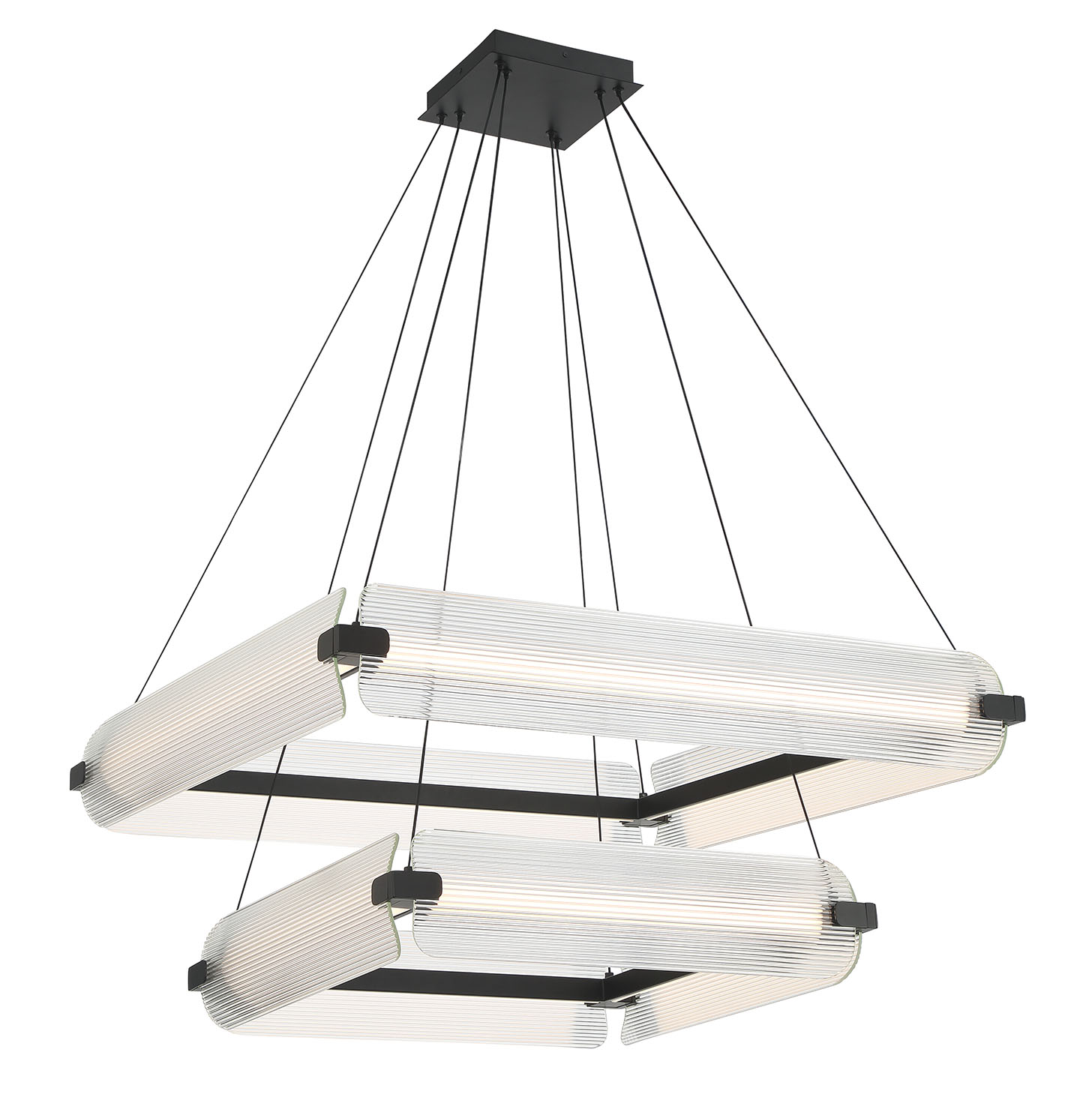 Découvrez NEONESS Luminaire suspendu DEL fini noir mat avec verres clairs, 34,25po Longueur, 34,25po Largeur, 11,5po Hauteur, 180po Hauteur max., DEL 126,4W 6474 Lumens, 3000K
