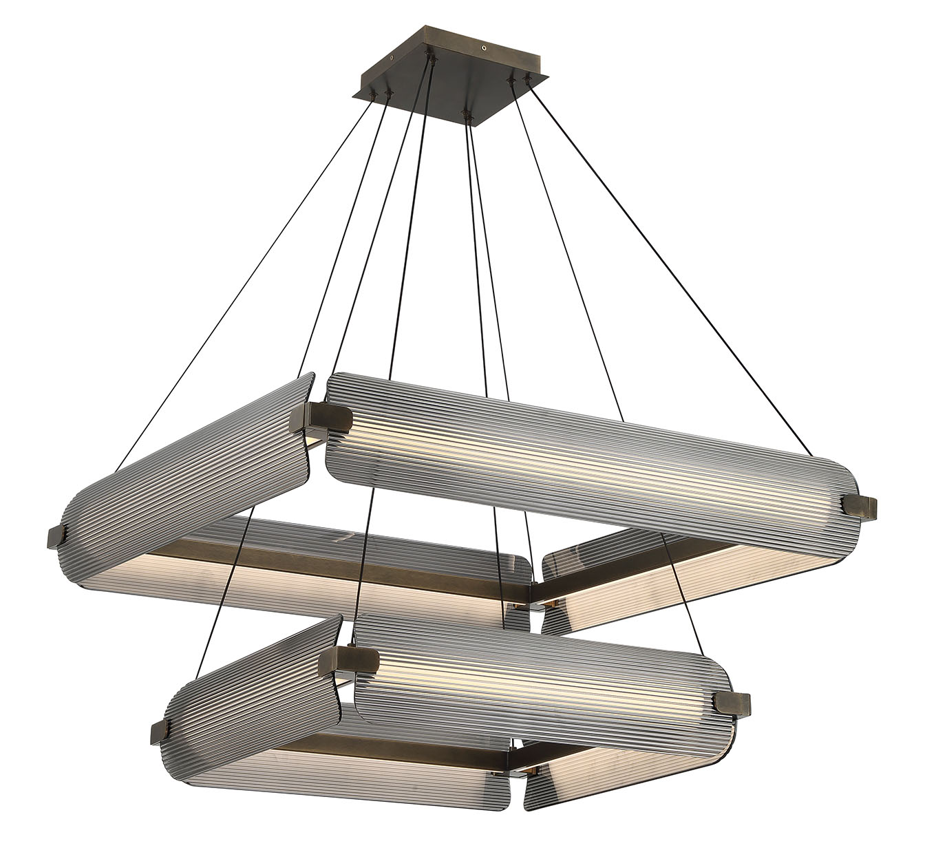 Découvrez NEONESS Luminaire suspendu DEL fini laiton patiné avec verres fumés, 34,25po Longueur, 34,25po Largeur, 11,5po Hauteur, 180po Hauteur max., DEL 126,4W 4362 Lumens, 3000K