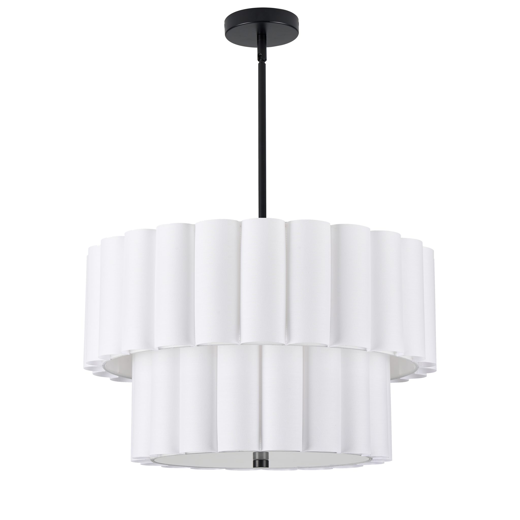 Découvrez PACIFICA Luminaire suspendu, fini noir mat avec abat-jour blanc, 22po Diamètre, 12,5po Hauteur, 4 x 60W E26